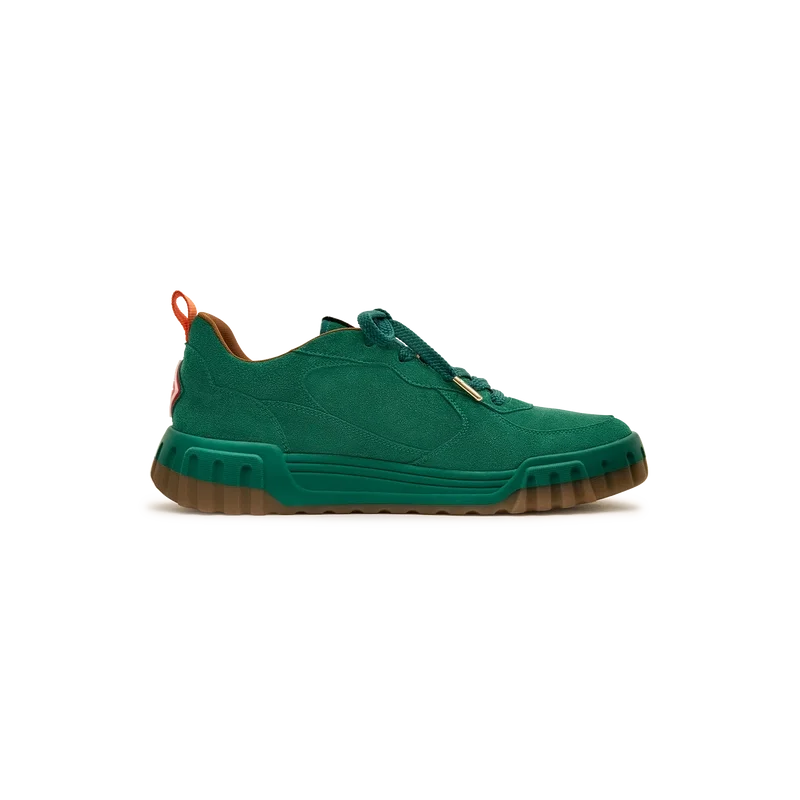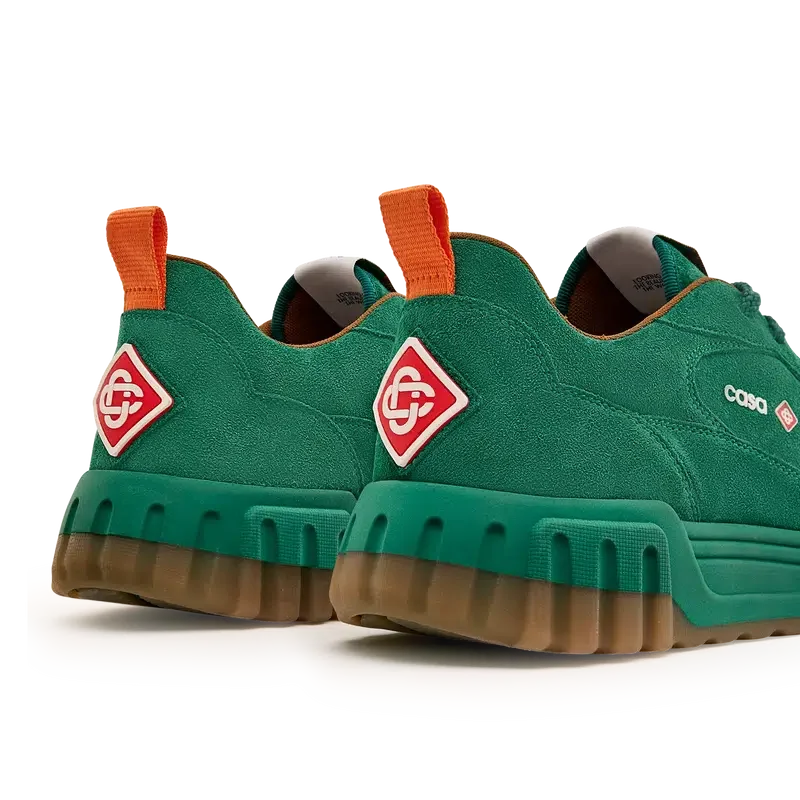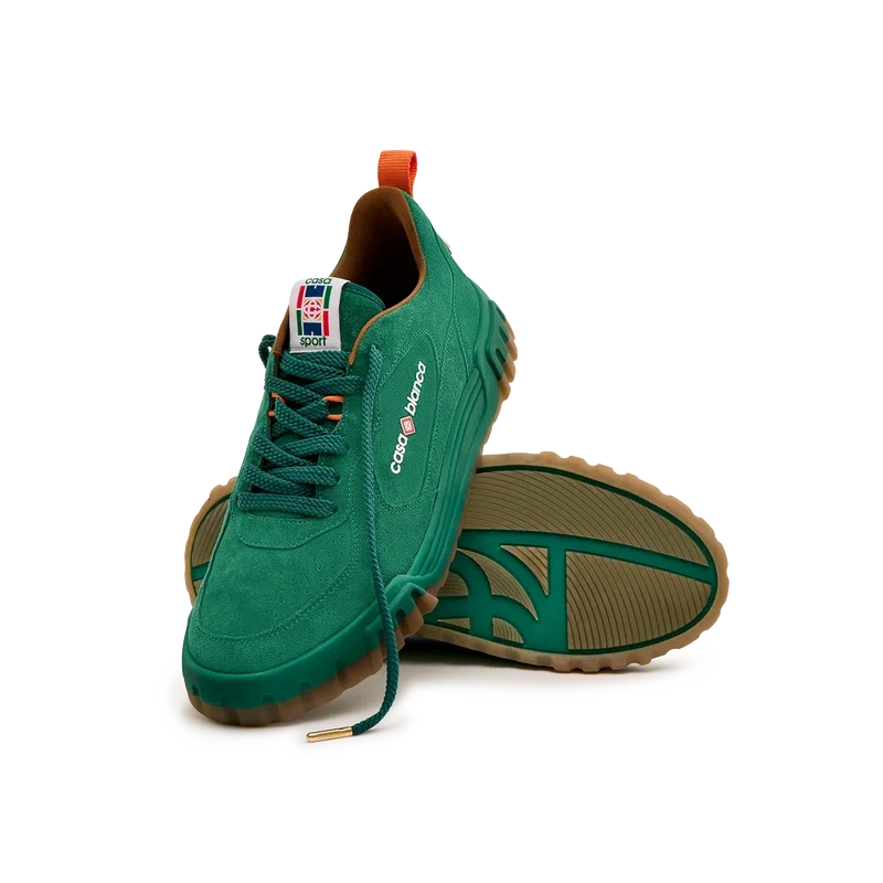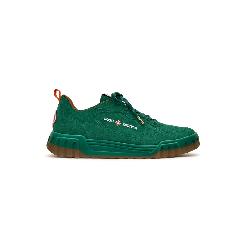 Le langage stylistique de la basket Court reflète les silhouettes emblématiques des années 90. Les couleurs présentes sur toute la semelle en caoutchouc combinent les codes raffinés du tennis et de l’architecture classique, créant une palette harmonisée sur l’ensemble de la chaussure, avec un accent mis sur les couleurs primaires rehaussées par le blanc du tennis pour créer une palette de couleurs axée sur le sport. La tige des chaussures présente des lignes fluides et intégrées, en clin d’œil aux silhouettes emblématiques des années 90. Le logo Casablanca est bien visible partout, notamment grâce au motif en losange signature de la marque sur le talon, au logo en silicone sur les empiècements latéraux, ainsi qu’à l’étiquette tissée sur la languette et à la semelle intérieure représentant un court de tennis, d’où le nom des chaussures, « Court ».