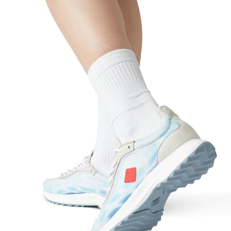 La basket Stade Blue pour femme tire son nom de l’ancienne mesure grecque de la distance d’une course à pied, qui a ensuite donné naissance au mot « stade ». Ce modèle s’inspire des chaussures de course de performance et transpose la technologie moderne issue d’une tradition ancestrale ; les codes de la course moderne, avec la maille légère et l’imprimé lumineux, ajoutent à sa modernité. La semelle présente des courbes sculptées, en référence à notre modèle Atlantis et au design emblématique de Casablanca.