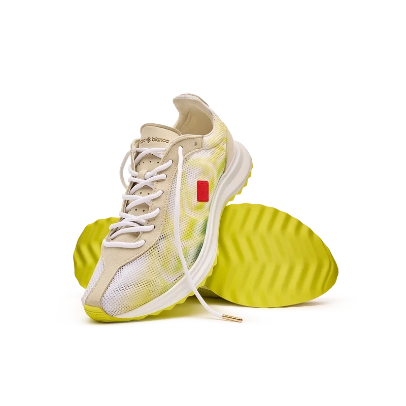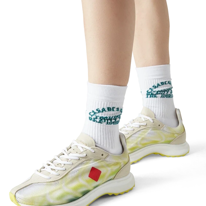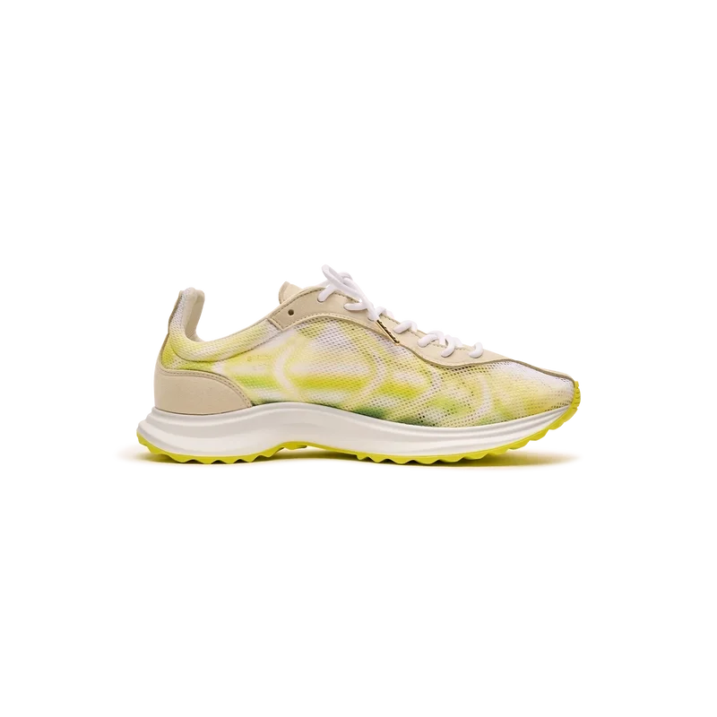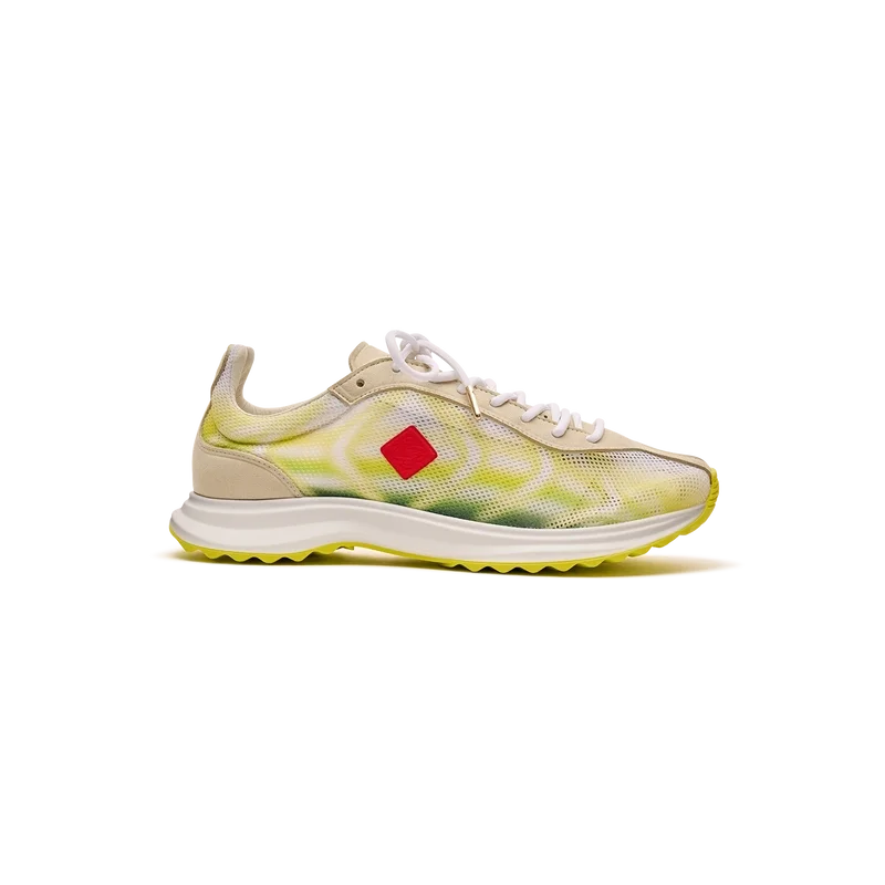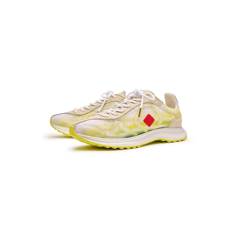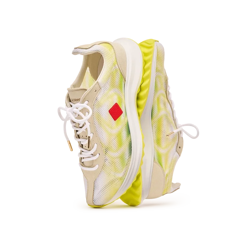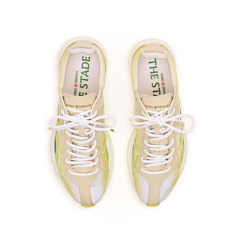 La basket Stade Green pour femme tire son nom de l’ancienne mesure grecque de la distance d’une course à pied, qui a ensuite donné naissance au mot « stade ». Ce modèle s’inspire des chaussures de course de performance et transpose la technologie moderne issue d’une tradition ancestrale, les codes de la course moderne avec la maille légère et l’imprimé lumineux ajoutant une touche de modernité. La semelle présente des courbes sculptées, en référence à notre modèle Atlantis et à un classique du design Casablanca.