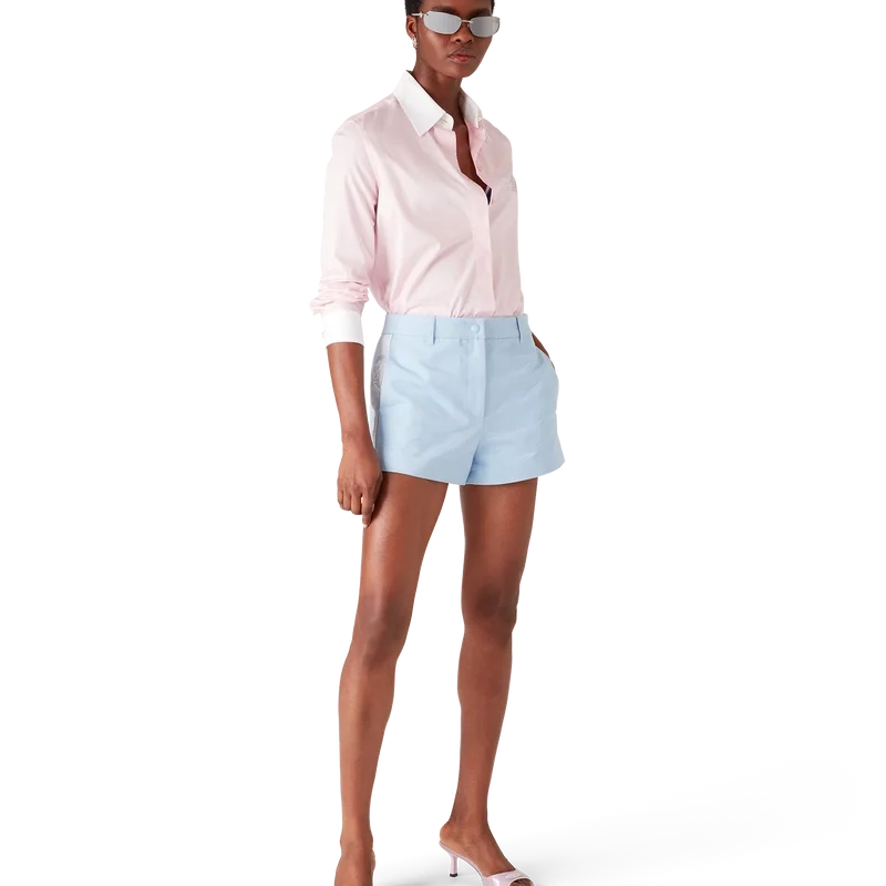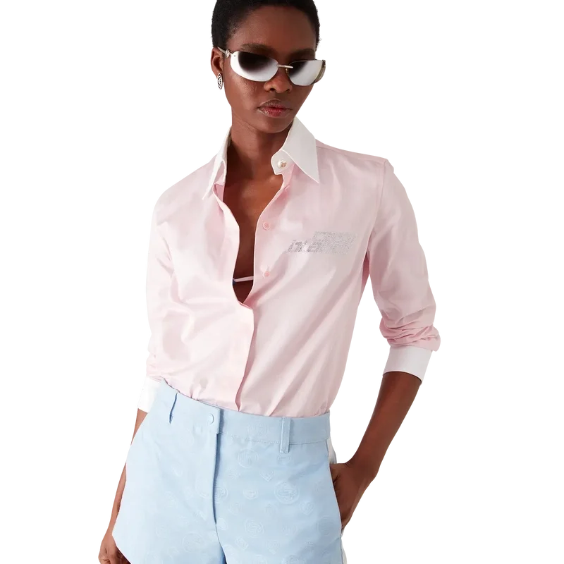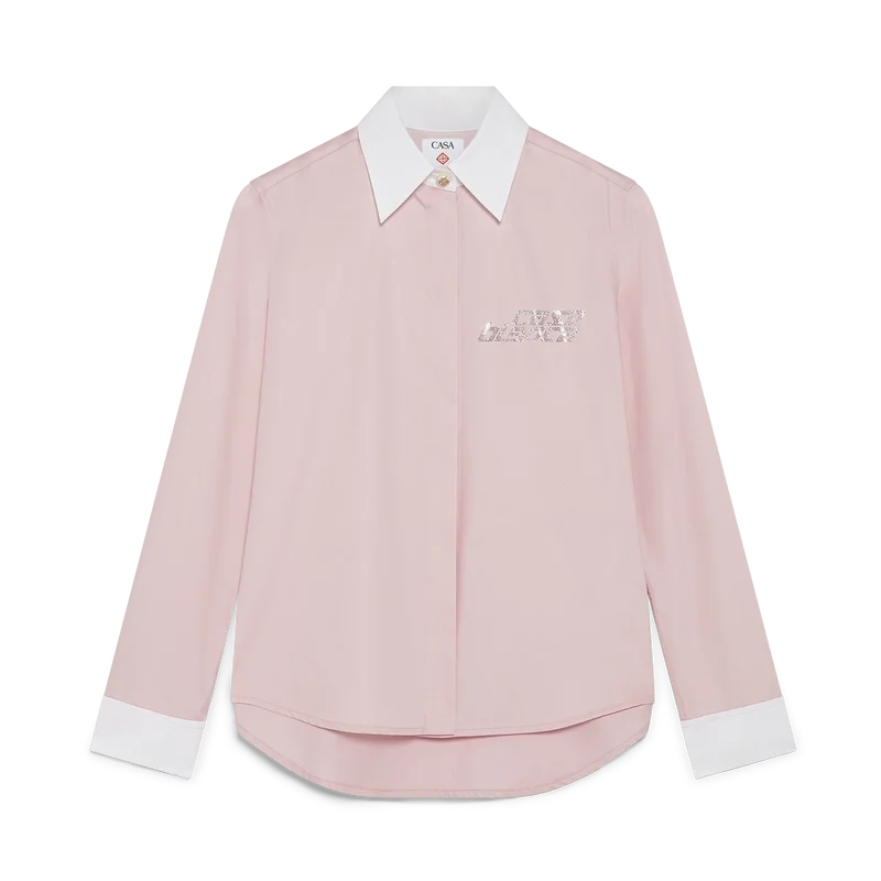 La chemise à manches longues Crystal est un modèle ajusté orné d’un logo en cristal appliqué. Elle est dotée de poignets blancs contrastés et d’un col en pointe, d’une fermeture à boutons cachée, de boutons en corozo avec logo CC entrelacé, ainsi que de boutons en nacre avec logo CC entrelacé au niveau du col et des poignets.