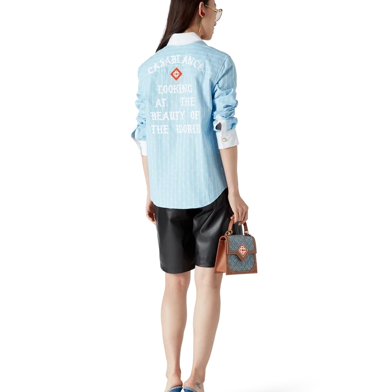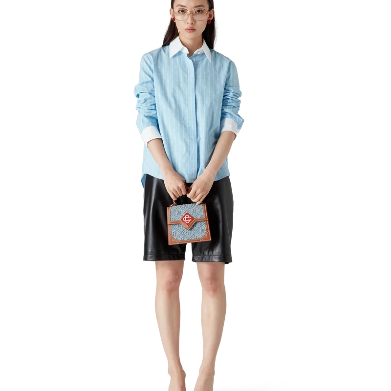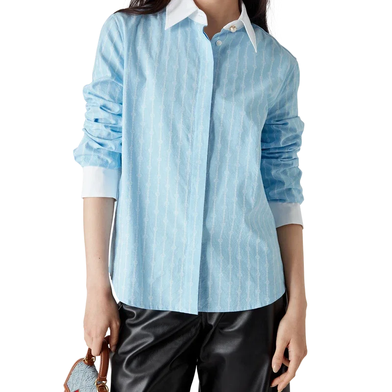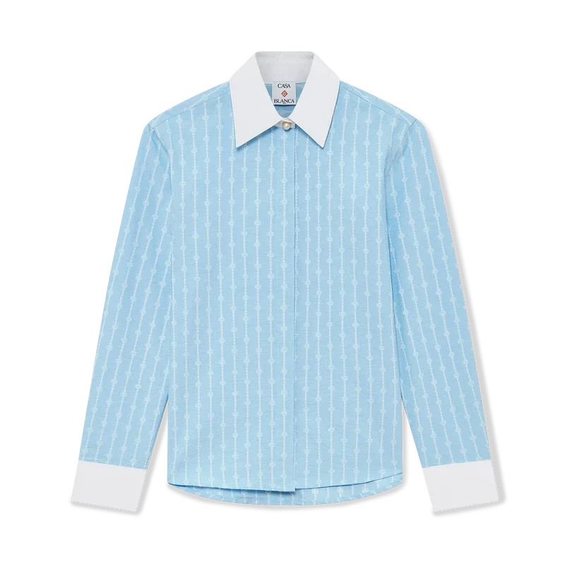 La chemise à manches longues Laurel à fines rayures est un modèle ajusté confectionné en tissu jacquard de coton. Elle est dotée de poignets blancs contrastés et d’un col en pointe, d’une fermeture à boutons cachés avec des boutons en corozo arborant le logo Cc entrelacé, et d’un ourlet arrondi.