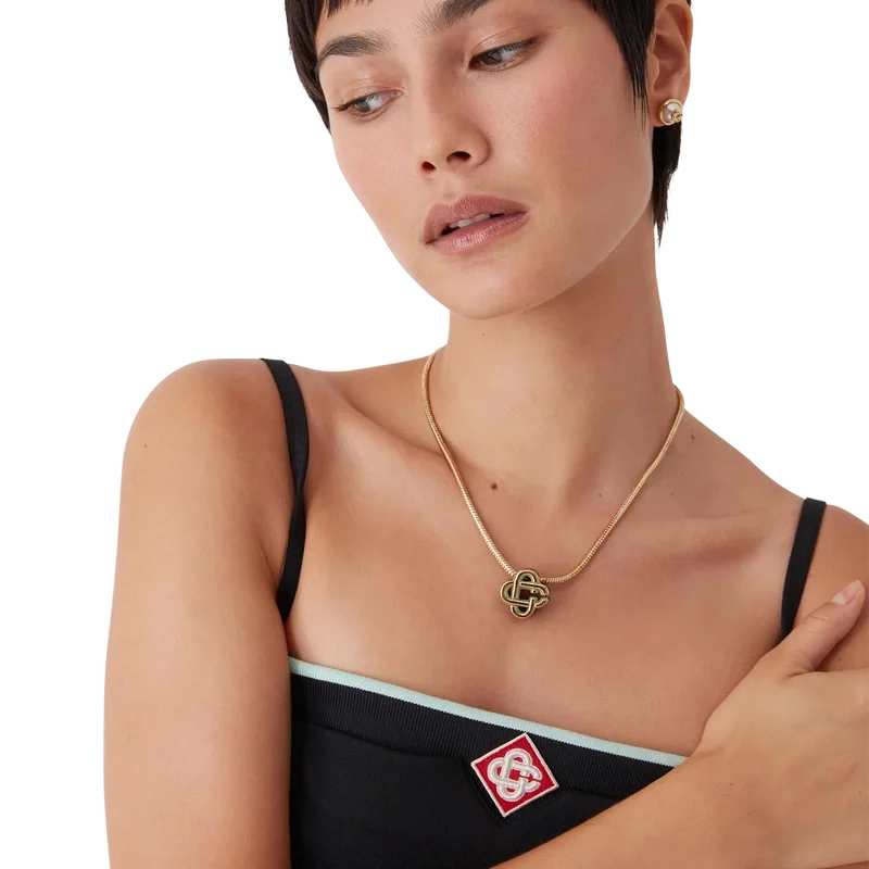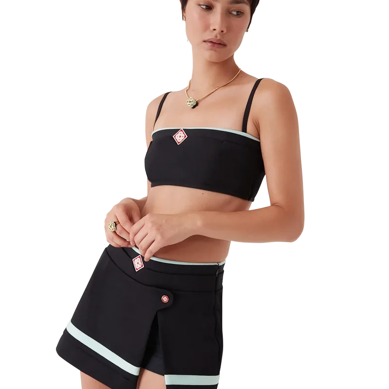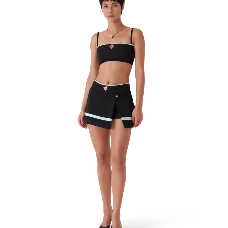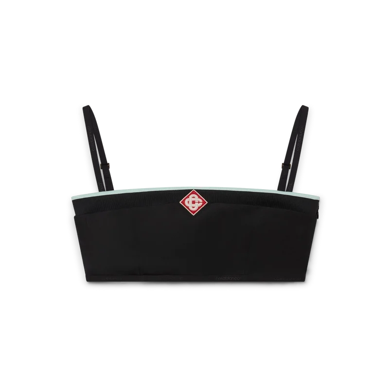 La bralette en tricot est un modèle sans manches d’inspiration sportive, orné du Diamond Monogram emblématique de la Maison en son centre. Cette pièce est confectionnée dans un tissu tricot, agrémentée de bretelles spaghetti et de bords rayés.