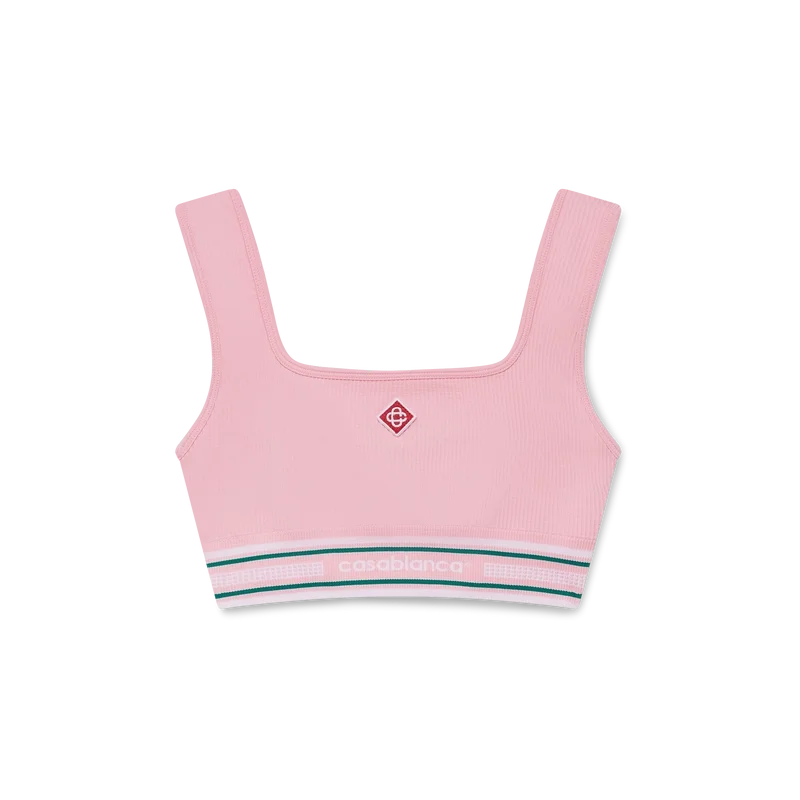 La bralette Casablanca est un modèle sans manches d’inspiration sportive, orné du logo en forme de diamant emblématique de la maison au centre, confectionné dans un tissu extensible. Elle est dotée d’une bande élastique arborant le logo Casablanca de la maison, de bretelles, de détails en empiècements et d’un encolure dégagée.