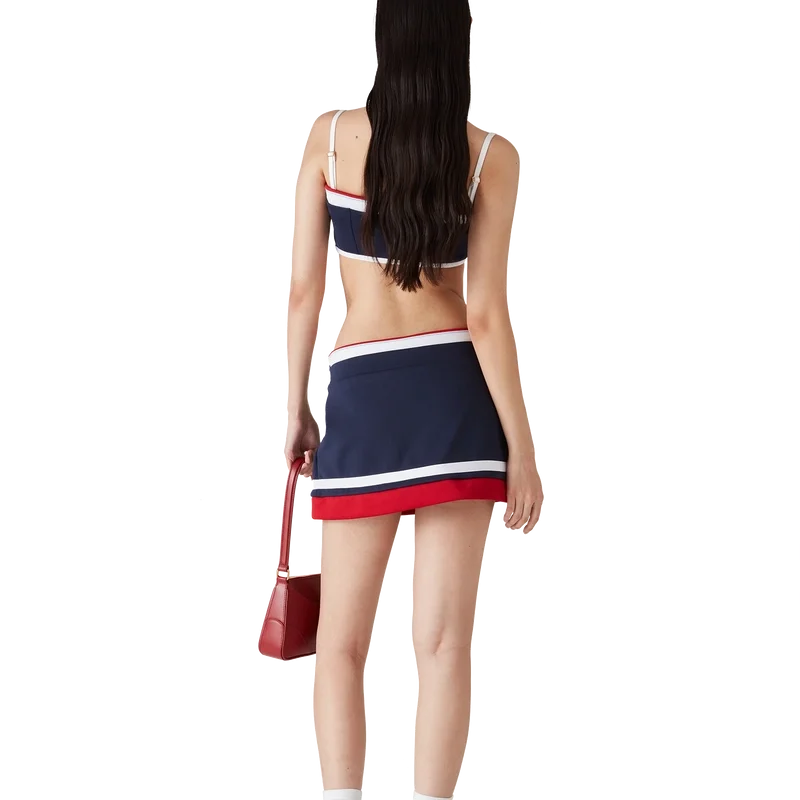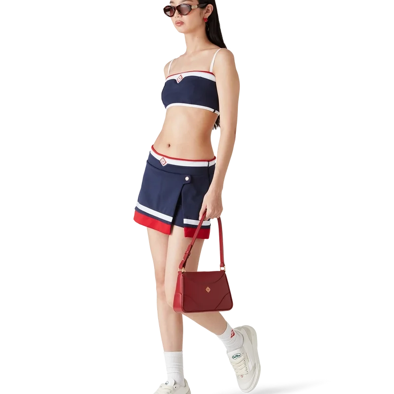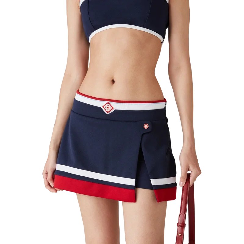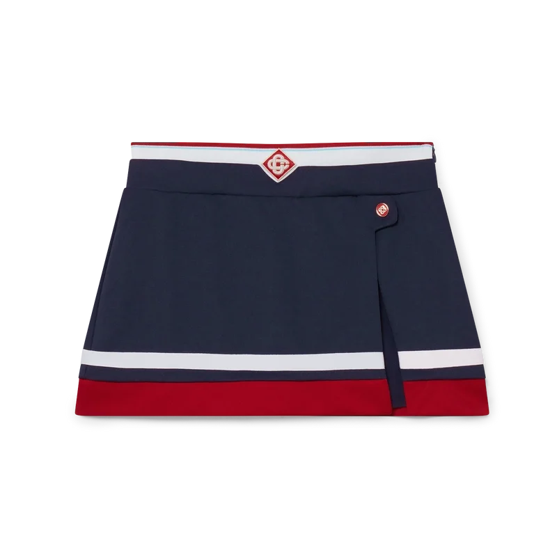 La mini-jupe en tricot est un modèle court confectionné en tricot. Elle est dotée d’une ceinture arborant le logo en losange emblématique de la maison, d’un short intégré, d’une fente et d’une fermeture à glissière sur le côté.