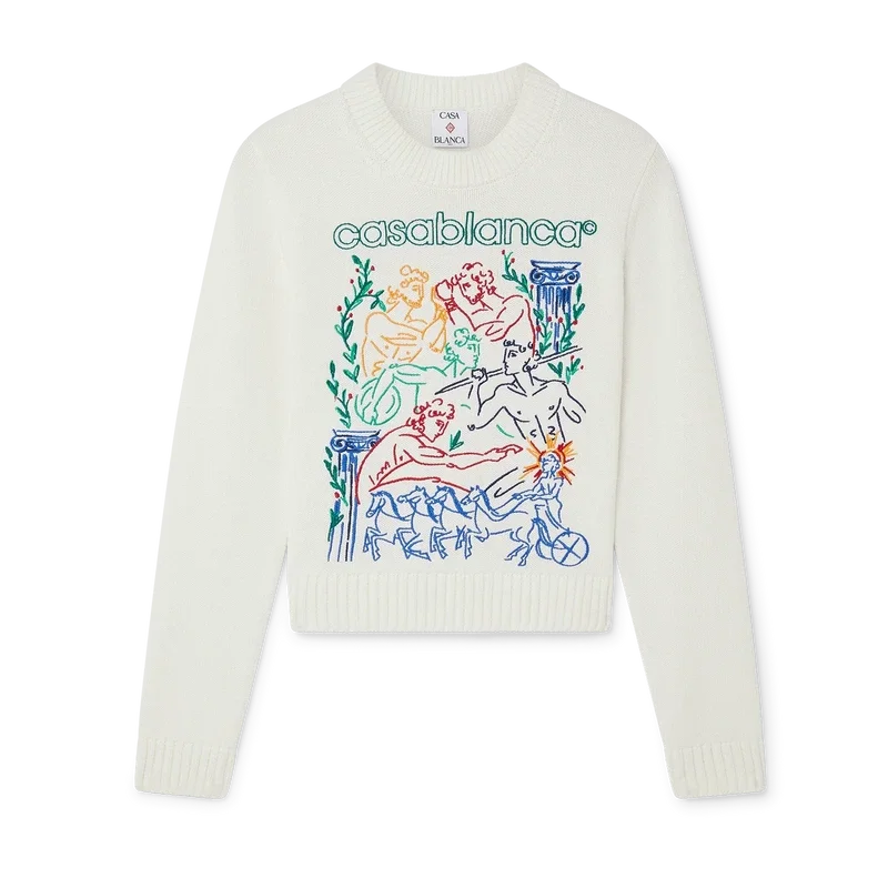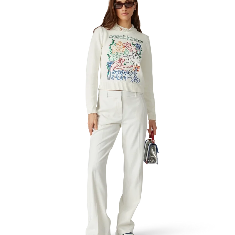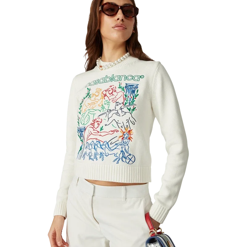 Le pull brodé est un modèle à manches longues confectionné en coton tricoté et orné du motif saisonnier brodé de la maison. Il est doté d’un col rond classique et de bords-côtes aux poignets, à l’encolure et à l’ourlet.