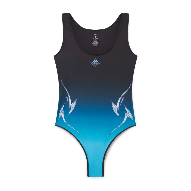 Le maillot de bain Blades est un modèle imprimé confectionné dans un tissu technique respirant, orné d’un motif jouant sur le contraste entre deux sensations opposées : la netteté de la lame et le chrome argenté froid, contrastant avec la chaleur de la nature, comme les tons roses et rouges audacieux d’une fleur d’orchidée. L’ajout de l’eau apporte une touche de fraîcheur et de vivacité au design. Il est doté d’une coupe échancrée au niveau des jambes, d’un col rond, d’une découpe dans le dos et du logo en forme de diamant emblématique de la marque sur la poitrine.