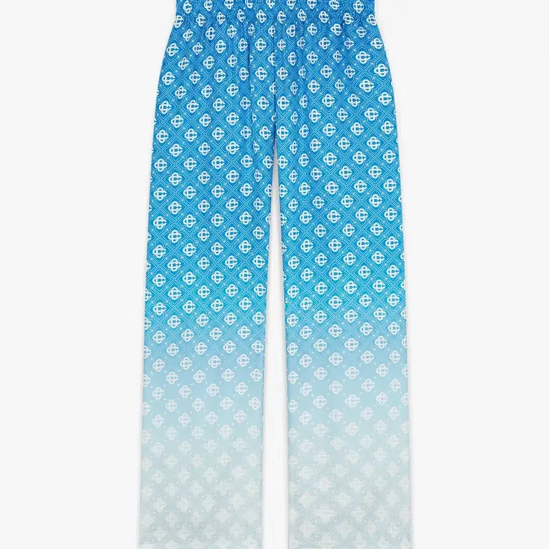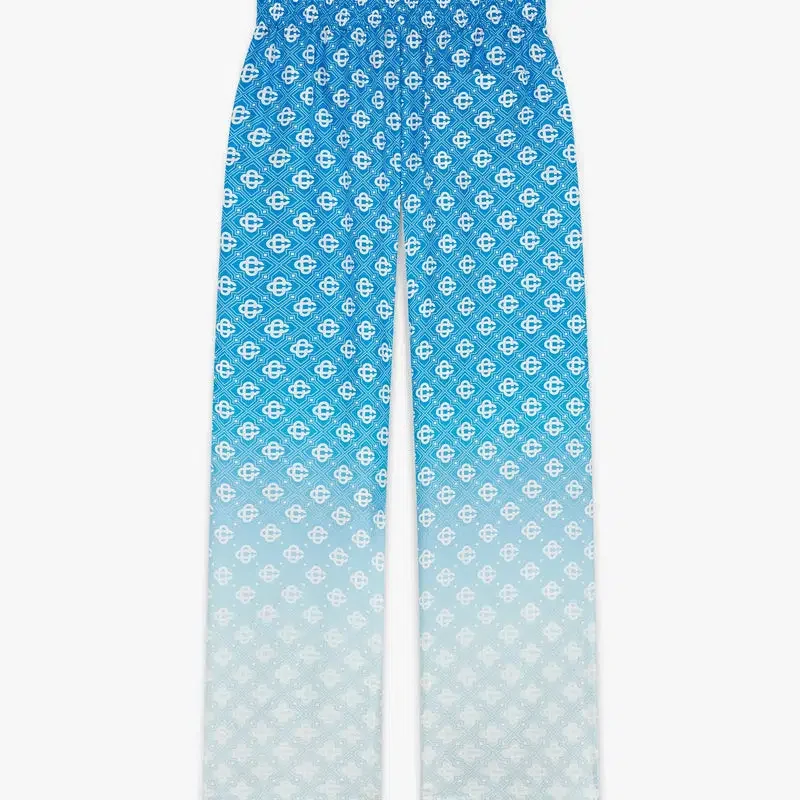 Pantalons en soie à motif Diamond Monogram en losanges dégradés bleus