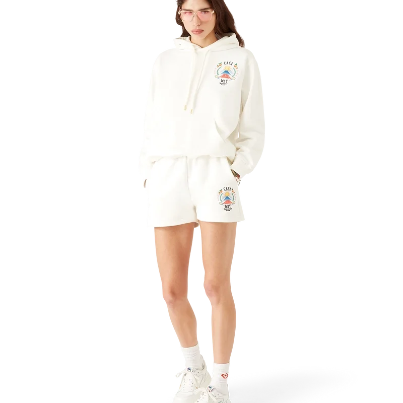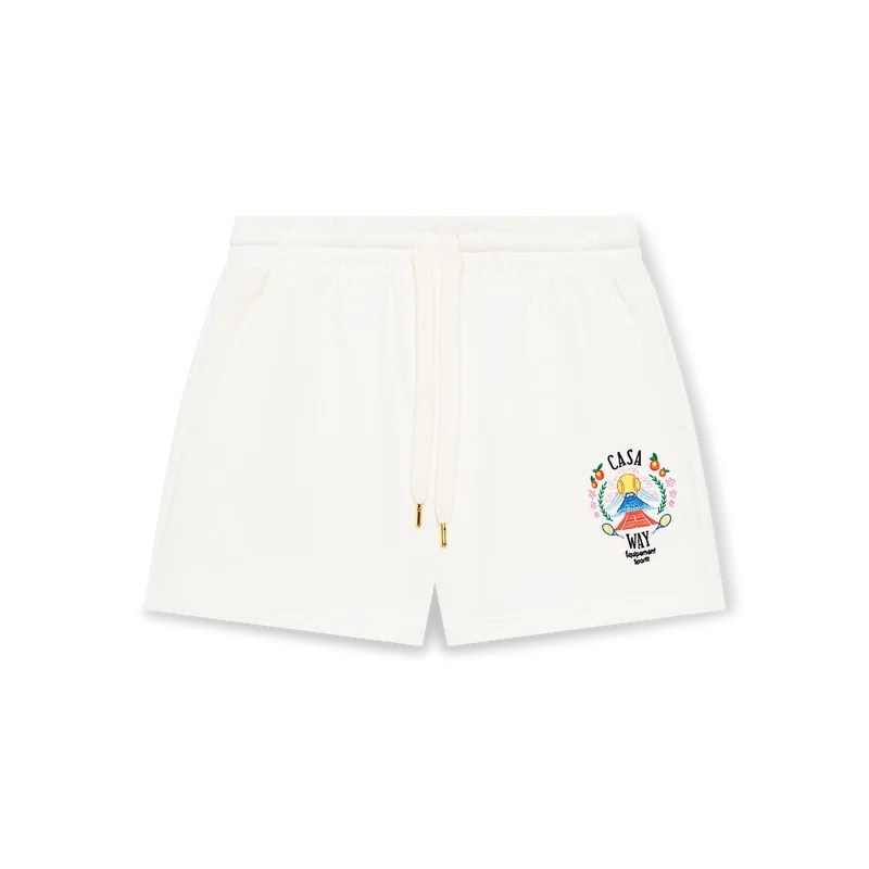 Le short de survêtement Casa Way Mountain est un modèle de sport confectionné en coton biologique et orné du motif saisonnier de la maison, réinterprété pour cette saison. Il est doté d’une taille élastiquée avec cordon de serrage aux extrémités dorées, de poches dans les coutures et d’une poche plaquée à l’arrière.