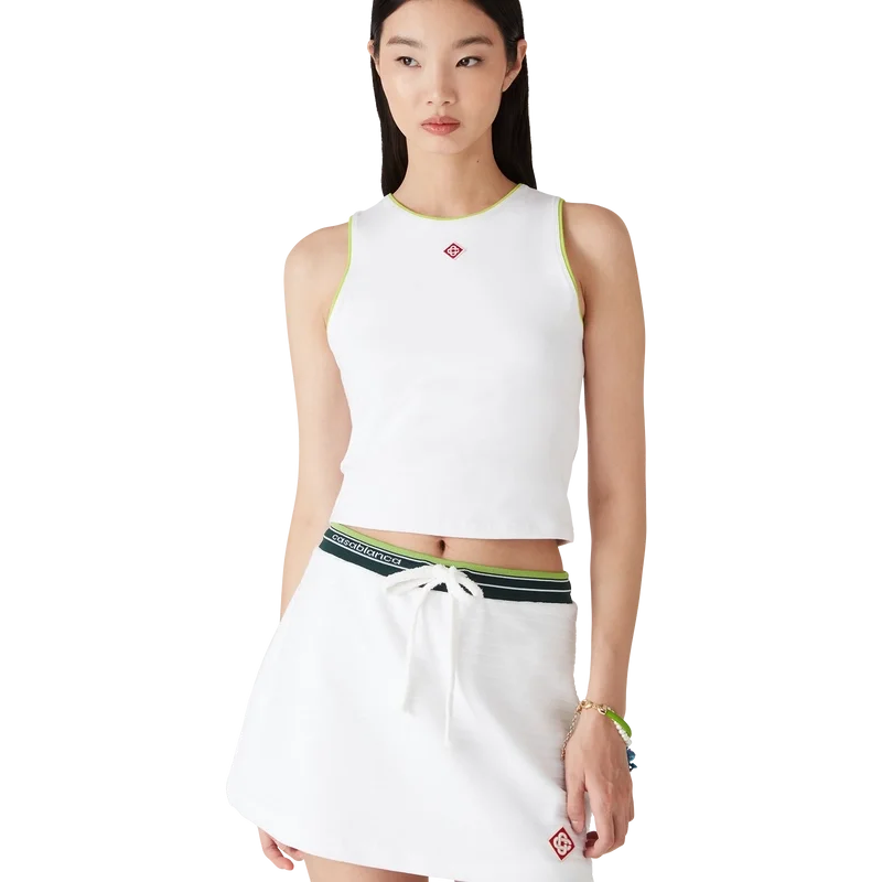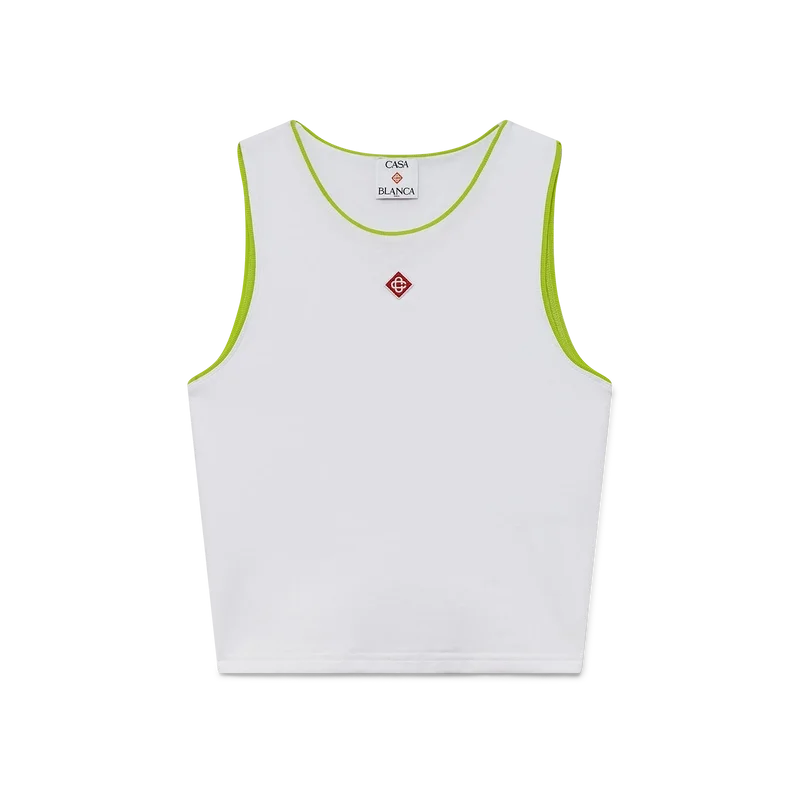 Le débardeur au logo diamant est un modèle court sans manches confectionné en coton. Il est orné du logo diamant emblématique de la maison et d’un col rond classique. Conçu pour tomber au-dessus du nombril.