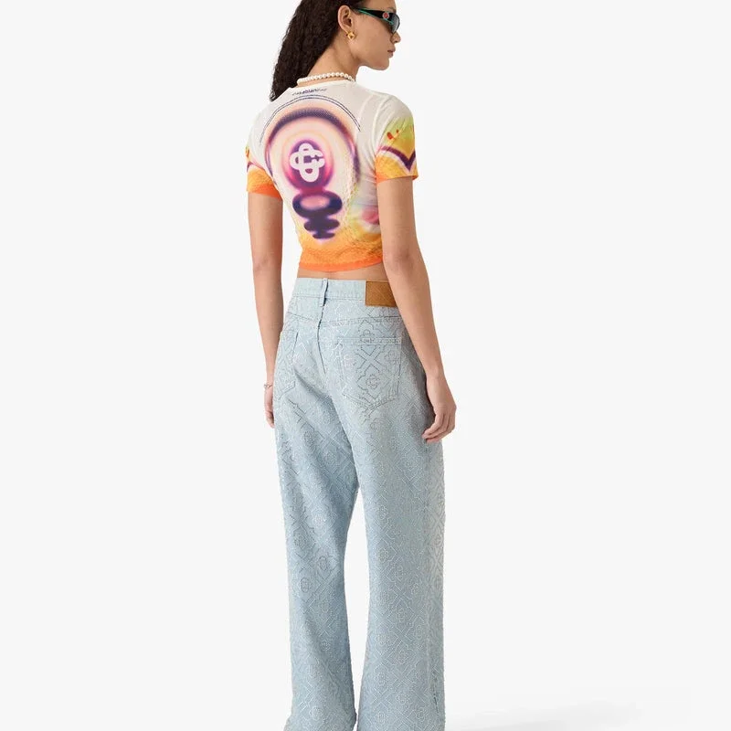 Le t-shirt à manches courtes en maille imprimée Sporchid pour bébé présente un design raffiné, mettant en vedette le motif Sporchid de la saison, composé de formes et de dégradés représentant la colonne et les pollinies de la fleur d’orchidée. Il est doté d’un col rond et d’une silhouette ajustée.