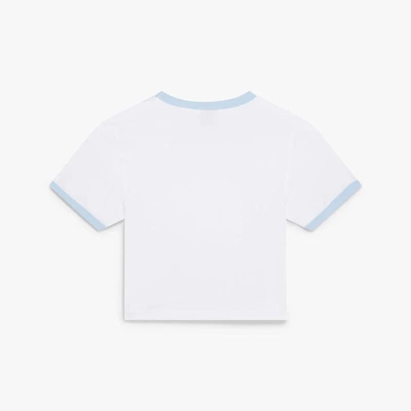 Le t-shirt à manches courtes Tennis Landscape Ringer pour bébé présente une coupe courte et arbore le motif Tennis Landscape de la saison, où des cadres interconnectés créent des niches de scènes différentes qui décrivent la transcendance du temps et de l’espace à travers le prisme du sport. Il est doté d’un col rond, de détails contrastés en bord-côte et d’une silhouette ajustée.