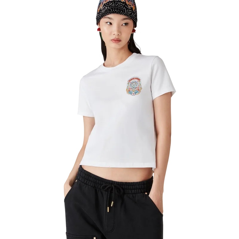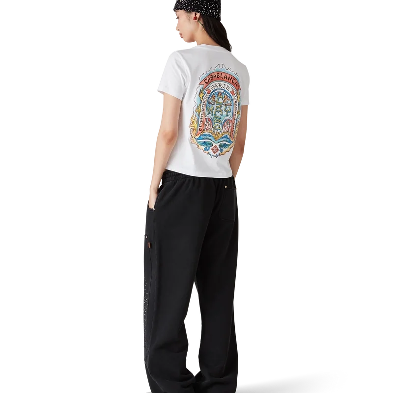 Le t-shirt Casa Way Skate est un modèle à manches courtes imprimé, confectionné en coton biologique et orné d’un motif emblématique inspiré des insignes classiques du skate californien des années 70, avec un cadre estompé. Il est doté d’un col rond classique.