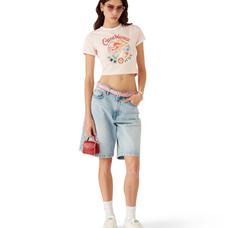 Le t-shirt court à emblème champignon est un modèle à manches courtes mettant en avant l’un des éléments de design emblématiques de la maison – le champignon – confectionné en coton Pima. Il est doté d’un col rond classique. Conçu pour s’arrêter au-dessus du nombril.