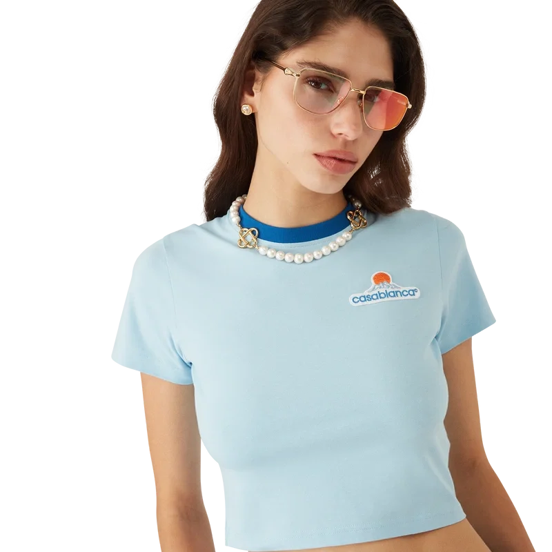 Le t-shirt court Montagne est un modèle à manches courtes confectionné en coton biologique et orné du motif emblématique de la maison : un logo qui ressemble à première vue à une montagne, mais qui, en y regardant de plus près, se lit comme « Casa ». Il est doté d’un col rond classique et du logo Casablanca de la maison. – Conçu pour une coupe ajustée.