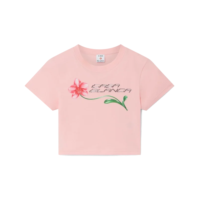 Le t-shirt court pour bébé avec logo Orchid est un modèle raffiné à manches courtes et à la coupe ajustée, orné du logo Orchid caractéristique de la maison et de la marque Casablanca. Le design est complété par un ourlet court pour une finition moderne et décontractée.
