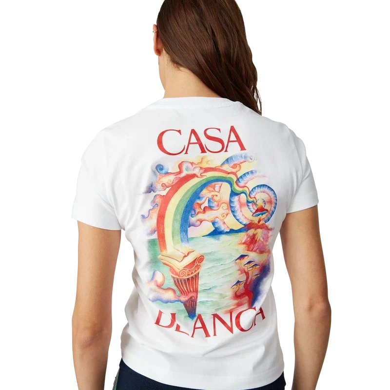 Le t-shirt « Nature’s Teacher » est un modèle à manches courtes imprimé, confectionné en coton biologique et orné d’une illustration saisonnière de la maison inspirée du rituel d’Éleusis sur le thème de la quête du savoir, présenté lors de la saison précédente. Il est doté d’un col rond classique.