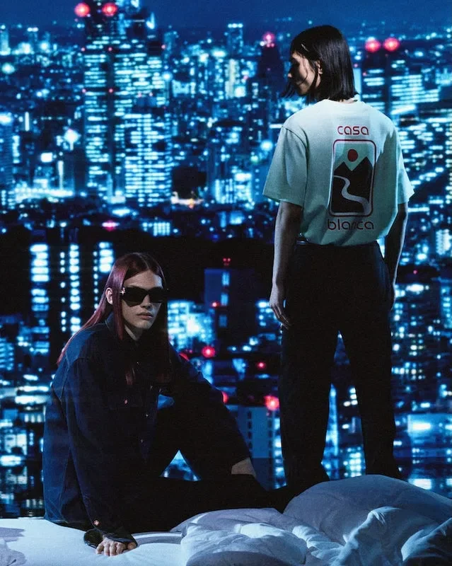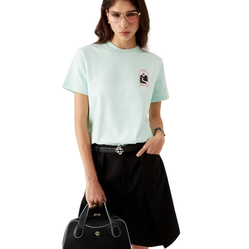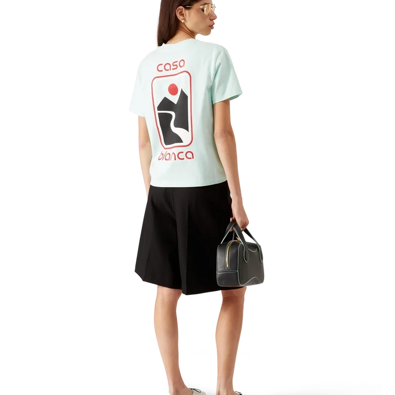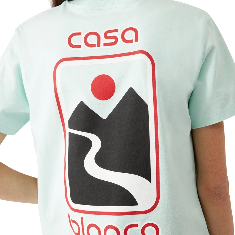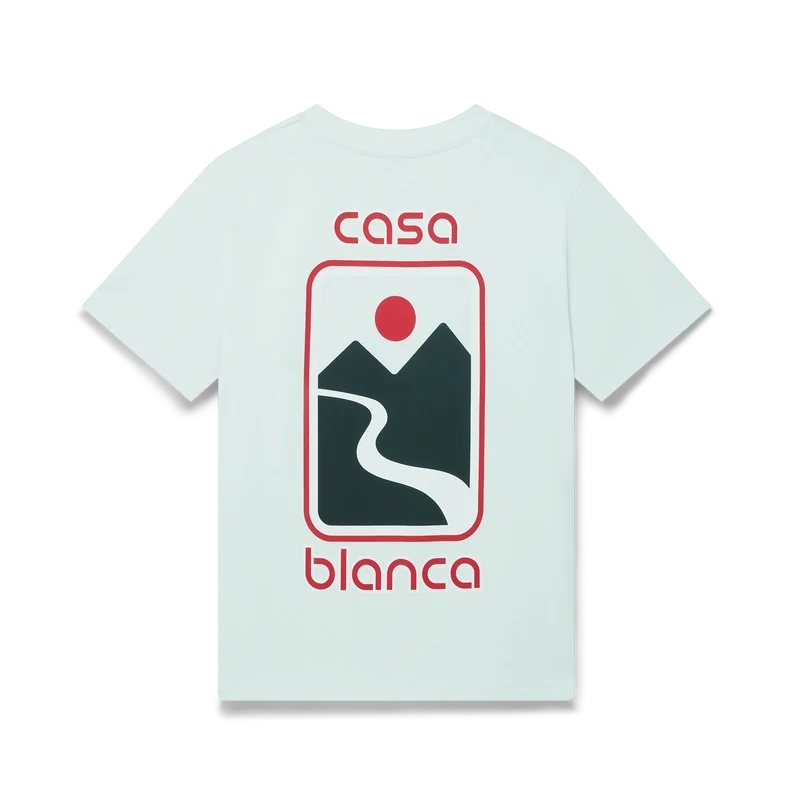 Le t-shirt Sunset Valley est un modèle à manches courtes orné d’un imprimé inspiré du Japon, confectionné en coton biologique. Il présente un col rond classique et le logo superposé « Casablanca » de la marque, et est conçu pour une coupe décontractée.