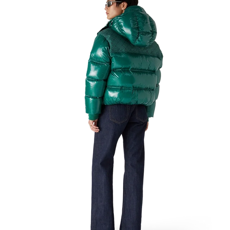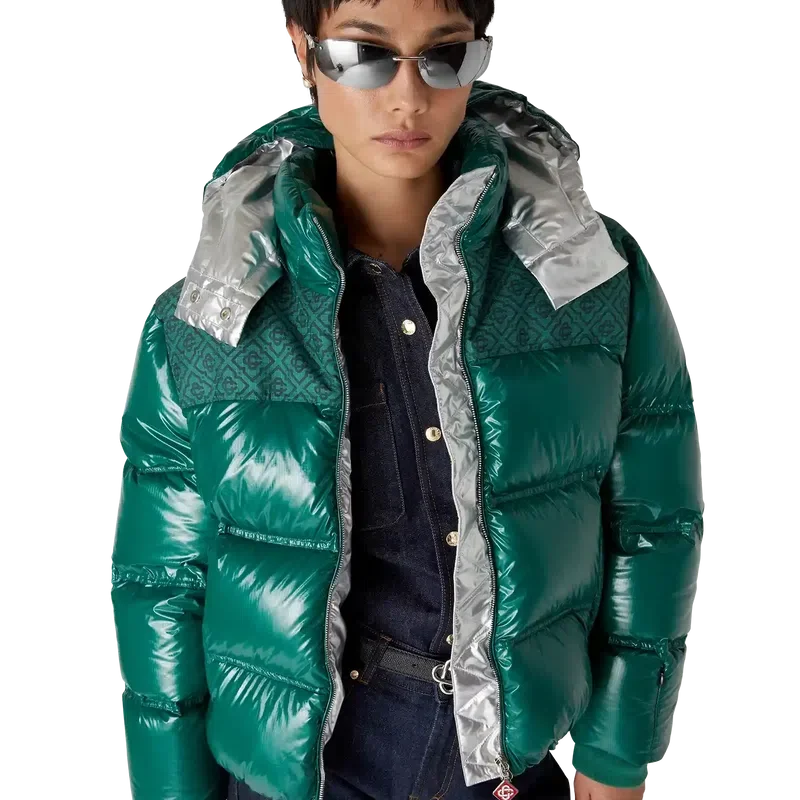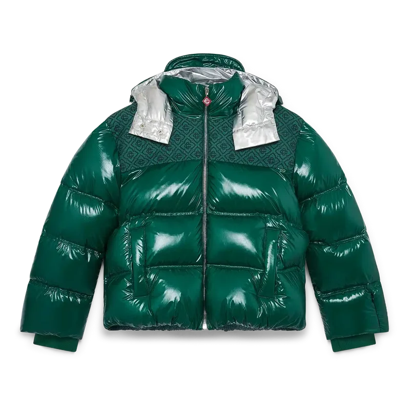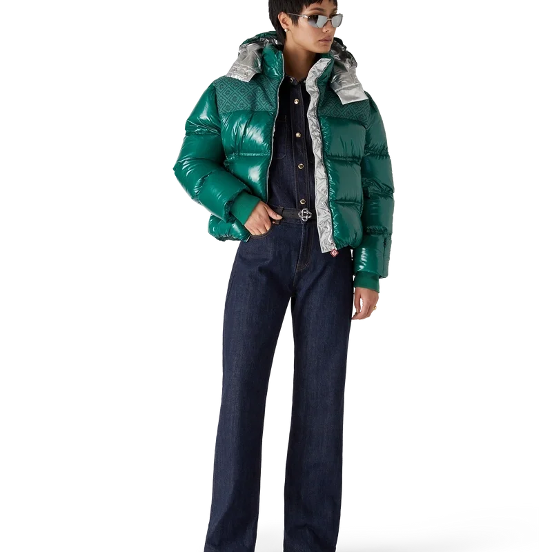 La doudoune matelassée en nylon est un vêtement d’extérieur moderne de coupe carrée, confectionnée en nylon ripstop avec un rembourrage en duvet et un empiècement jacquard monogramme contrasté sur les épaules. Elle est dotée d’une capuche avec cordons de serrage et boutons-pression arborant le logo CC, d’un col montant offrant une chaleur supplémentaire et une protection contre les intempéries, d’une fermeture à glissière avec tirette ornée du logo en losange emblématique de la maison, de poches avant zippées, de sangles de réglage aux poignets griffées, ainsi que d’un ourlet et de poignets élastiqués.