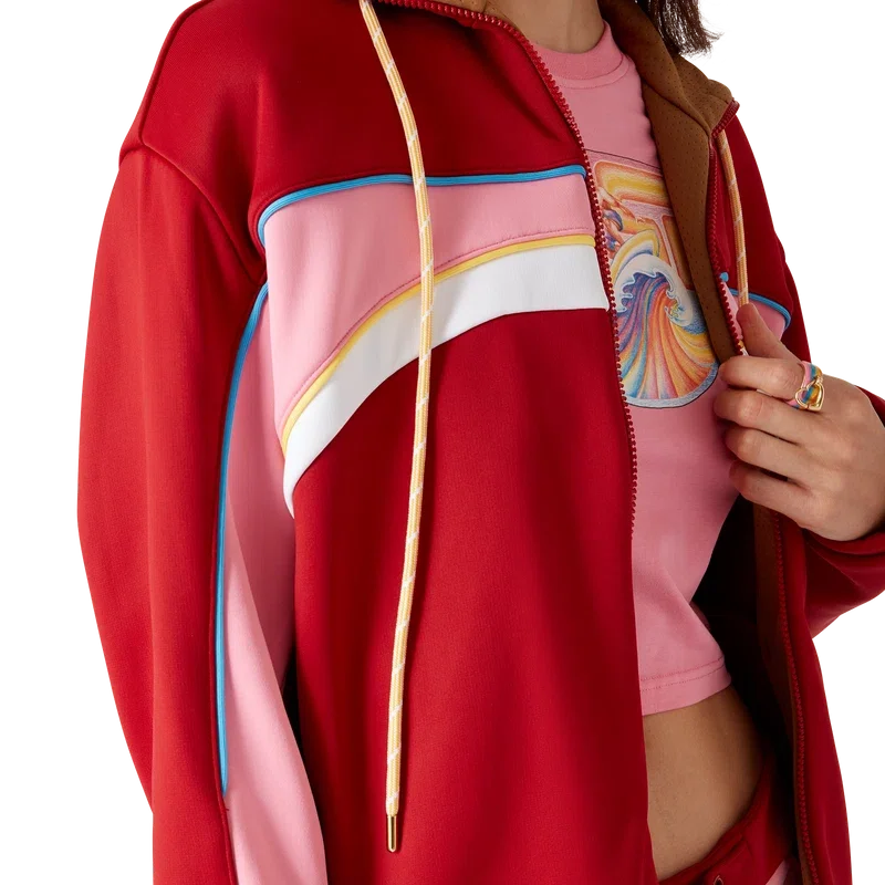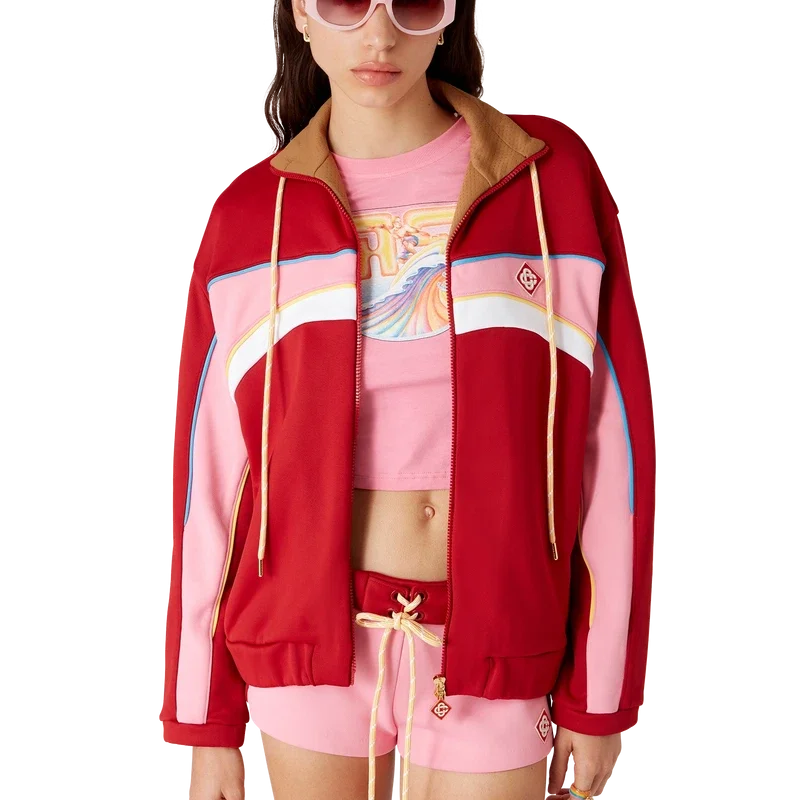 La veste de survêtement oversize en tricot est un vêtement de sport à manches longues confectionné en tricot. Elle est dotée d’un col cheminée, d’une fermeture à cordon, d’une fermeture à glissière, ainsi que de poignets et d’un ourlet élastiqués.