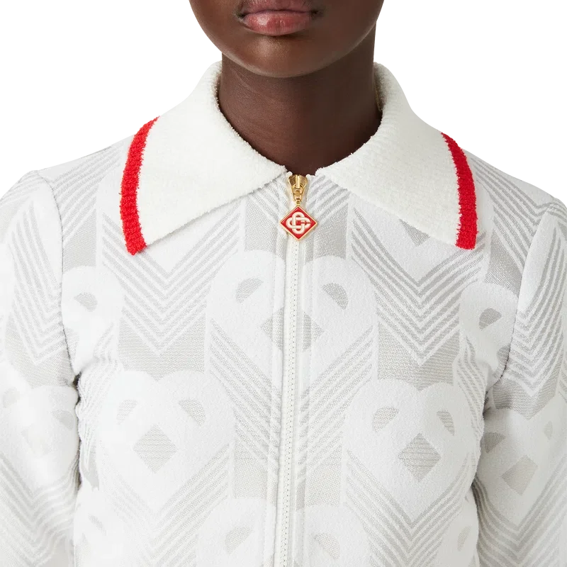 La veste en tissu éponge Monogramme Cœur dégradé présente un motif imprimé sur toute la surface, mettant en vedette le monogramme Cœur de la Maison sur le fond dégradé de gris de cette saison. Confectionnée dans un tissu éponge en coton mélangé Monogramme, elle est dotée d’une fermeture à glissière, d’un col, d’un ourlet et de poignets élastiqués.