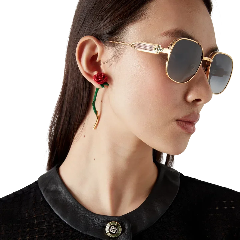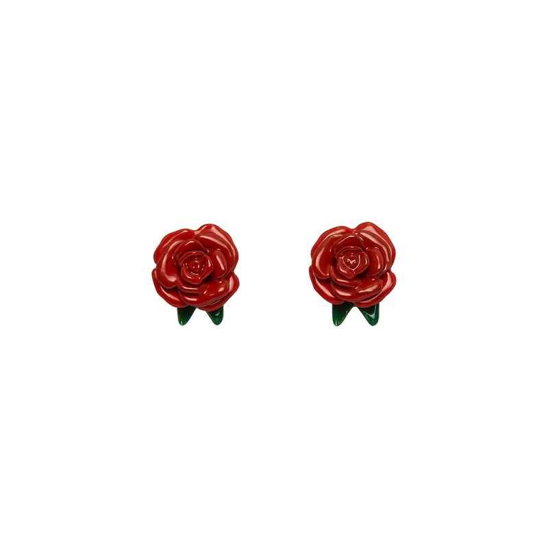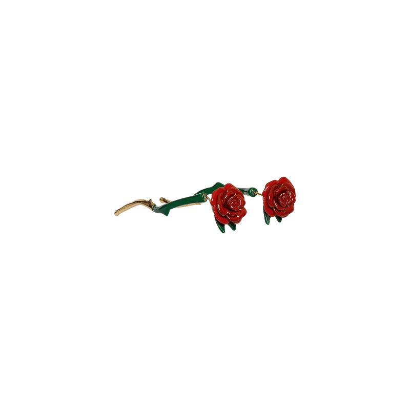 Les boucles d’oreilles Rose Drop sont une paire de boucles d’oreilles en forme de rose dont la tige traverse l’oreille. Elles sont fabriquées en émail peint à la main et en laiton plaqué or. Cet article est conçu uniquement pour les oreilles percées.