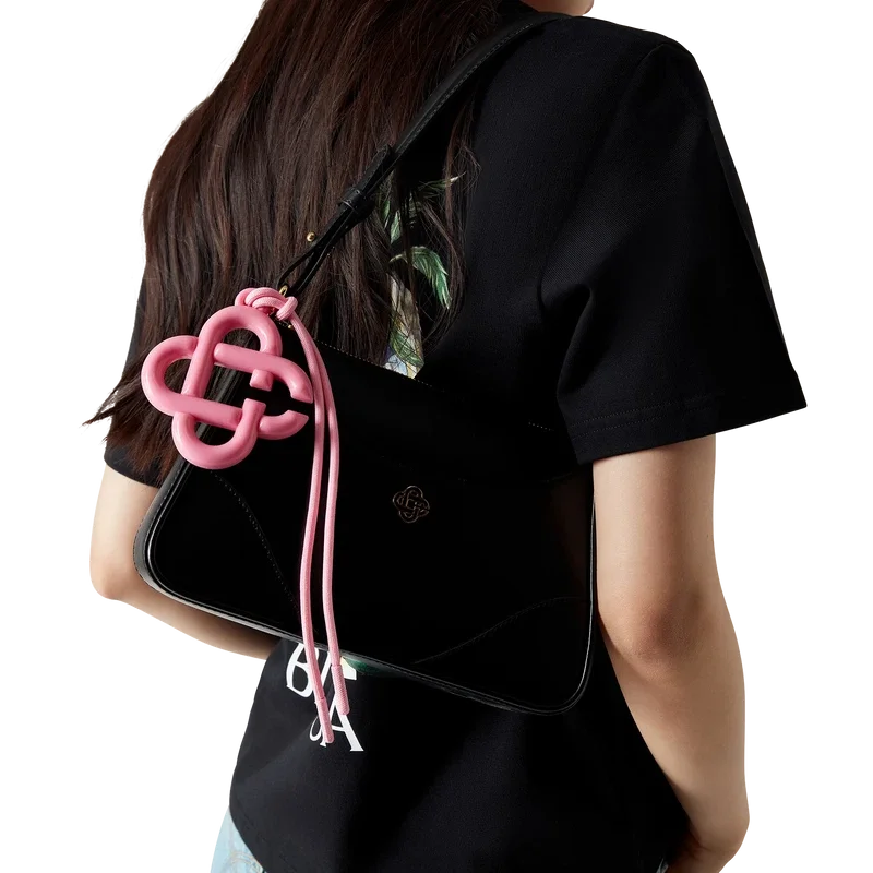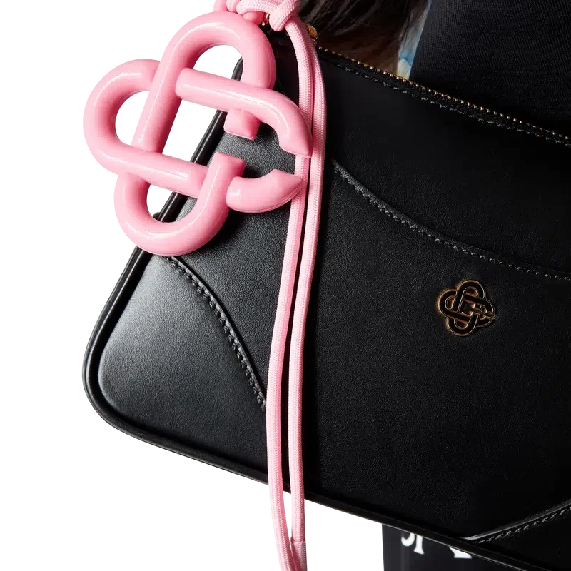 Le charm logo CC est un accessoire arborant le logo CC entrelacé de la Maison, confectionné en silicone. Il est doté d’un cordon rose assorti pour une fixation facile.