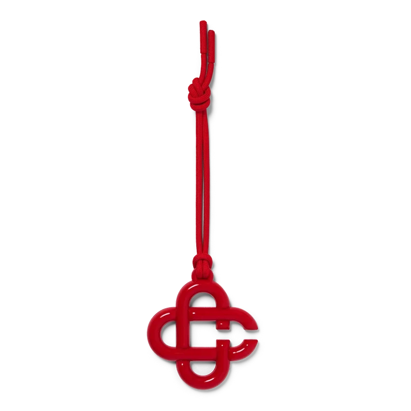 Le pendentif Logo CC est un accessoire orné du logo CC entrelacé de la Maison, réalisé en tissu silicone. Il est complété par un cordon rouge assorti pour une fixation facile.