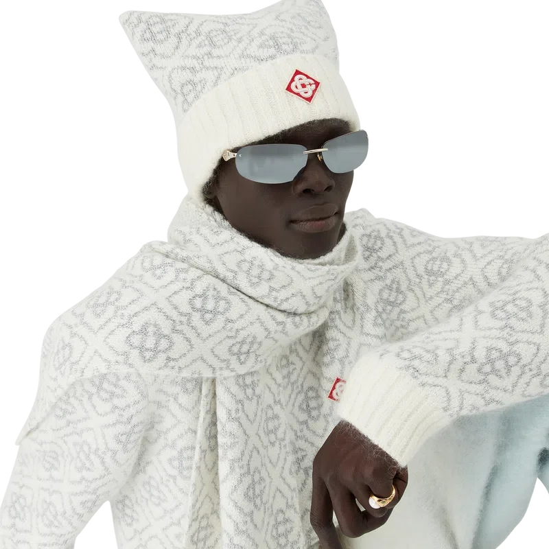 Le bonnet Ski est un modèle raffiné confectionné en mohair et orné du motif Monogram blanc et gris de la Maison, inspiré des motifs de givre sur les fenêtres des fermes traditionnelles japonaises. S’inspirant des cristaux de neige sur les bosquets de bambous, ce modèle incarne l’élégance d’Apras-Sport.