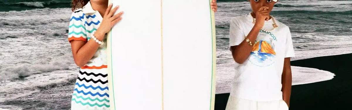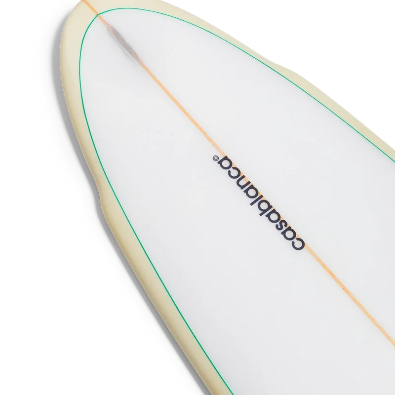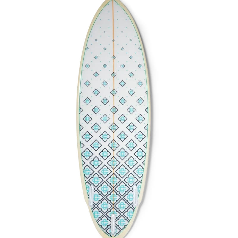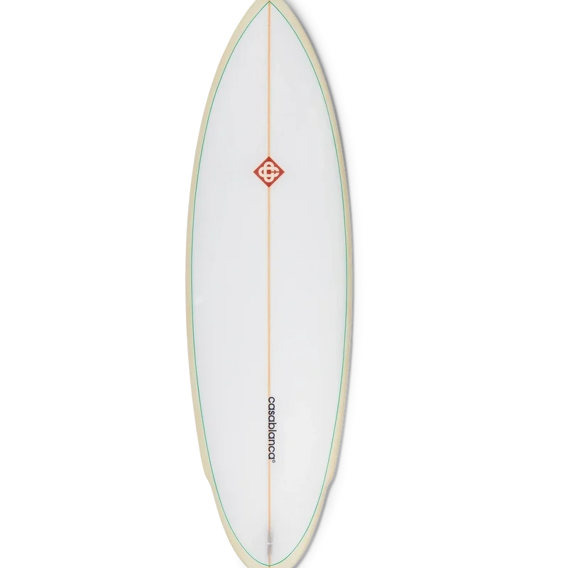 La planche de surf Casablanca est fabriquée à partir de fibre de verre haut de gamme, de mousse de polyuréthane et de résine polyester. Elle arbore l’imprimé monogramme dégradé de la maison sur la face inférieure et le logo Casablanca avec le diamant emblématique sur la face supérieure. Elle est dotée d’un renfort en bois, d’une face supérieure blanche bordée de vert menthe et de rails jaune clair. La planche de surf Casablanca mesure 178,2 cm (du nez à la queue) x 53 cm (d’un rail à l’autre au point le plus large). Cet article est vendu sans ailerons ni leash.