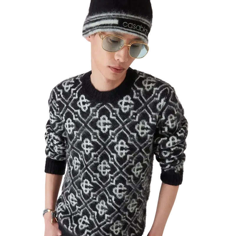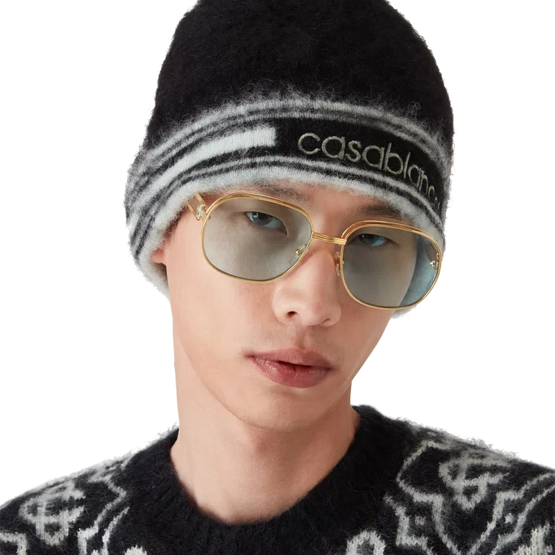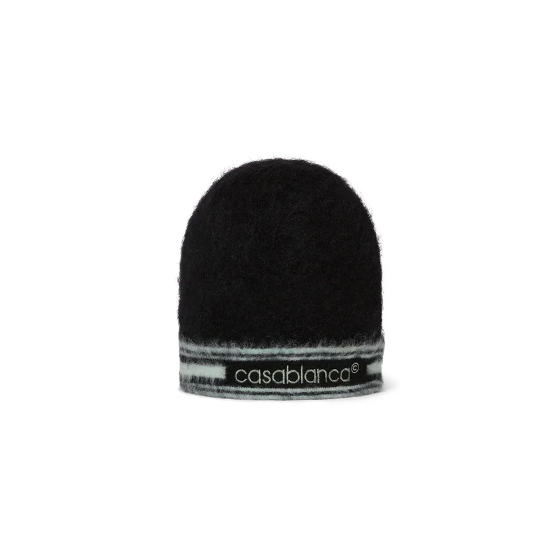 Le bonnet en mohair rayé est un modèle tricoté en mohair. Il est orné du logo Casablanca et de rayures sur le bord.