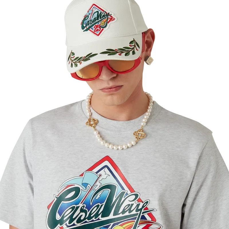La casquette Casa Way World Series est une casquette de baseball classique confectionnée en coton et ornée d’un motif emblématique réinterprétant les insignes classiques du baseball américain pour Casa Way Tennis. Elle est dotée d’une visière et d’une boucle réglable plaquée or.