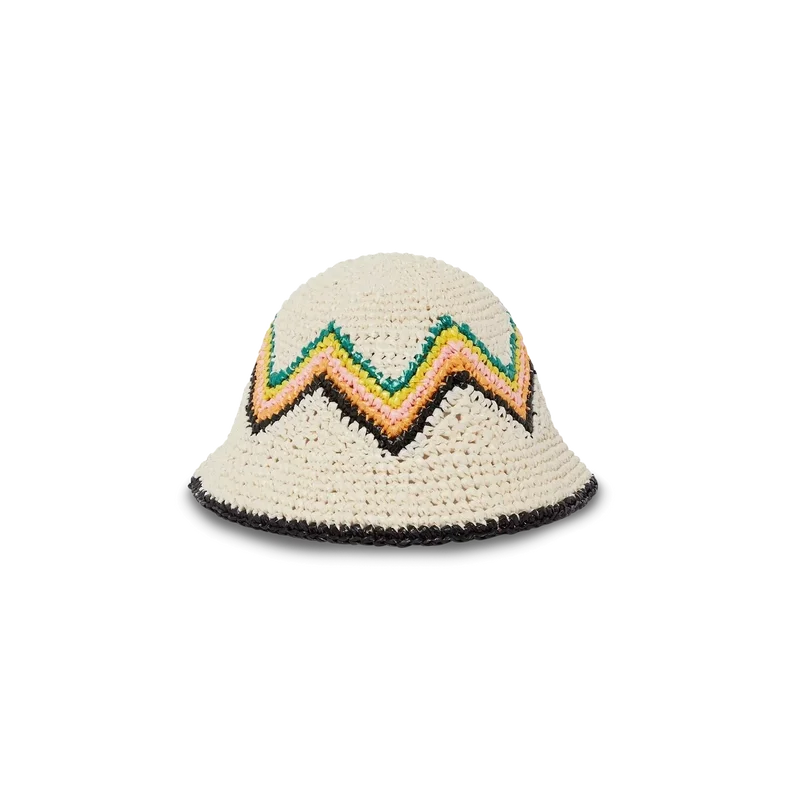 Le chapeau en raphia au crochet est un modèle de style bob confectionné dans un tissu au crochet à texture douce et à mailles ouvertes, décliné dans notre palette de couleurs saisonnière de verts et de blanc – l’indispensable de l’été. Il est orné d’un Diamond Monogram en forme de losange appliqué en son centre.