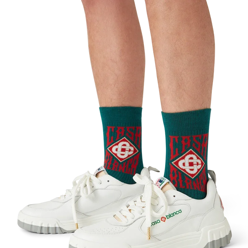 Les chaussettes au logo gothique sont confectionnées dans un tissu en mélange de coton et arborent le logo gothique superposé de la maison. Elles sont dotées d’un bord-côte au niveau de la cheville.