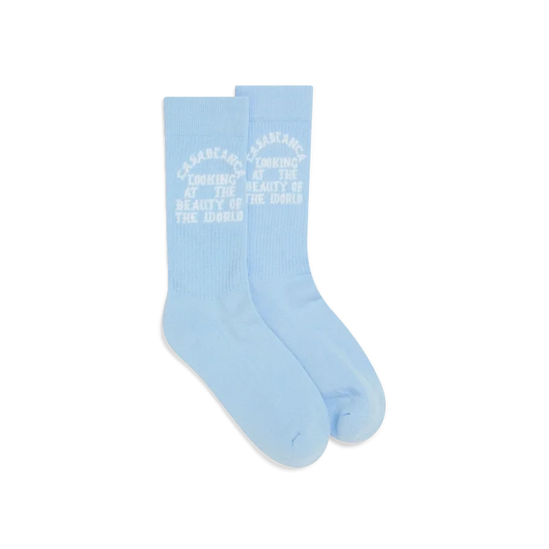 Les chaussettes « Beauty of the World » sont confectionnées dans un tissu en coton mélangé et arborent la devise de la marque Casablanca en typographie gothique inspirée de la culture urbaine. Finition à bords-côtes.