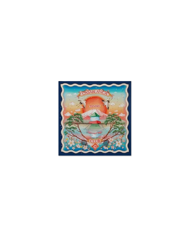 L’écharpe en soie Tennis Club Medium est un modèle imprimé confectionné en twill de soie, mettant en vedette le motif emblématique de la Maison. Elle reprend notre mise en page classique tout en intégrant l’art traditionnel japonais, ce qui en fait une pièce au fort pouvoir narratif. Elle est agrémentée d’une bordure ondulée à rayures bleues et blanches.