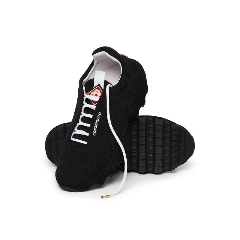 Inspirée par le symbolisme intemporel de la force architecturale, la basket Arch introduit un nouveau langage de conception ancré dans la forme, la fluidité et le sens. S’inspirant des codes de conception emblématiques de Casablanca, l’Arch est une interprétation sculpturale de la stabilité et du mouvement — un futur classique ancré dans la beauté structurelle. La semelle présente un motif en arc central, avec des arcs plus petits qui se répercutent sur la base caoutchoutée, formant un effet de vague au point de jonction entre la semelle et la tige — un rythme visuel qui rend hommage à la fois à la forme technique et au mouvement naturel. Confectionnée dans un mélange de textile respirant et de cuir vegan, la tige s’étend sans couture sur les bords de la semelle, créant une silhouette sculptée et continue. L’arche est maintenue par un laçage et rehaussée du logo diamant emblématique de la maison, sous forme d’un patch en silicone sur la languette, tandis que le logo Casablanca s’étire avec élégance le long du bord latéral, unifiant les lacets et la languette en une seule ligne de continuité stylistique. Ensemble, ces éléments offrent une expression moderne de l’équilibre : la force à travers la douceur, la structure à travers le mouvement.