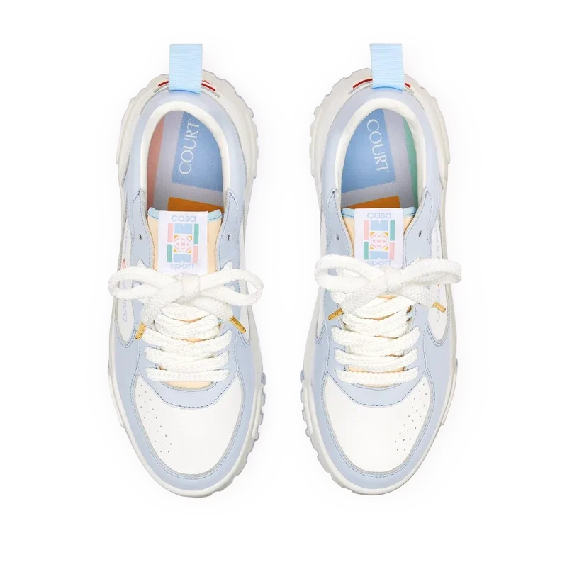 Le langage stylistique de la basket Court reflète les silhouettes emblématiques des années 90. Les couleurs présentes sur toute la semelle en caoutchouc combinent les codes raffinés du tennis et de l’architecture classique, créant une palette harmonisée sur l’ensemble de la chaussure, avec un accent mis sur les couleurs primaires rehaussées par le blanc du tennis pour créer une palette de couleurs à l’esprit sportif.