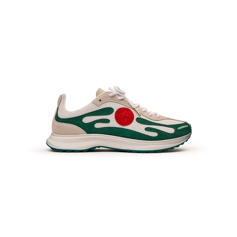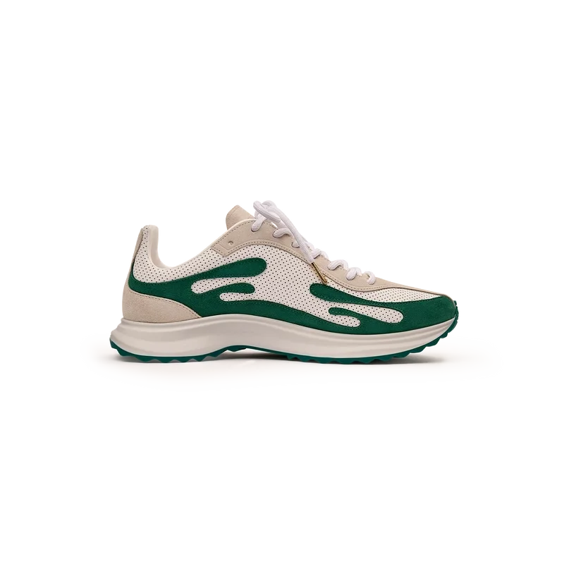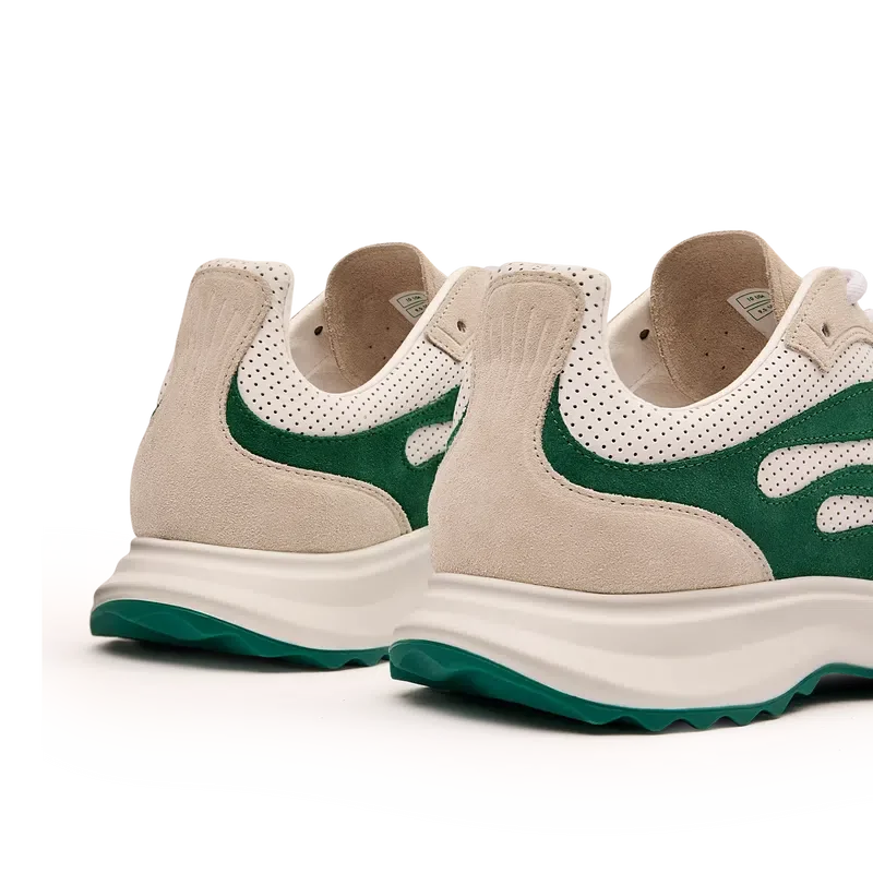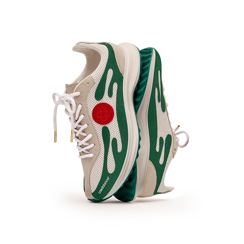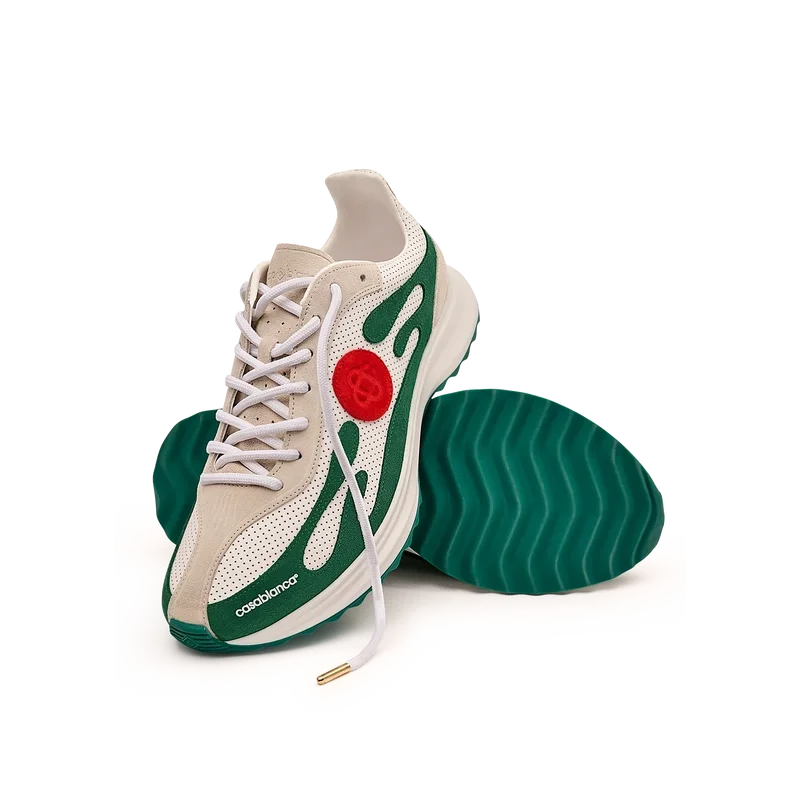 La basket Stade blanche et verte pour homme tire son nom de l’ancienne mesure grecque de la distance d’une course à pied, qui est ensuite devenue le mot « stade ». Ce modèle s’inspire des chaussures de course de performance et transpose la technologie moderne dans une tradition ancienne ; les codes de la course moderne, avec la maille légère et l’imprimé lumineux, ajoutent à sa modernité. La semelle présente des courbes sculptées, en référence à notre modèle Atlantis et au design stable de Casablanca.