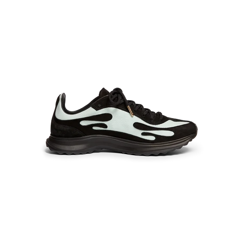 La basket Stade pour femme, en noir et menthe, tire son nom de l’ancienne mesure grecque de la distance d’une course à pied, qui a ensuite donné naissance au mot « stade ». Ce modèle s’inspire des chaussures de course de performance et transpose la technologie moderne dans une tradition ancestrale. La tige de la basket est confectionnée en cuir et la semelle est en caoutchouc.