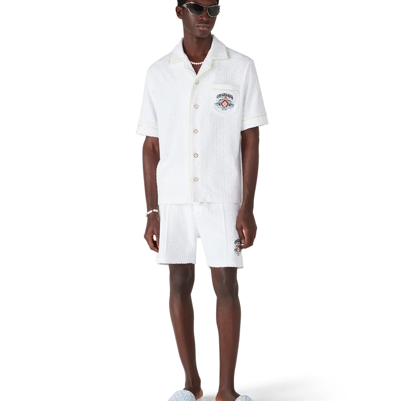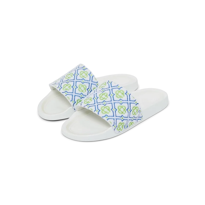 Les sandales de piscine Monogram pour homme présentent un design raffiné, confectionnées en tissu éponge Monogram et ornées du Diamond Monogram de la Maison sur leur tige. Elles sont dotées de semelles en caoutchouc rembourrées.