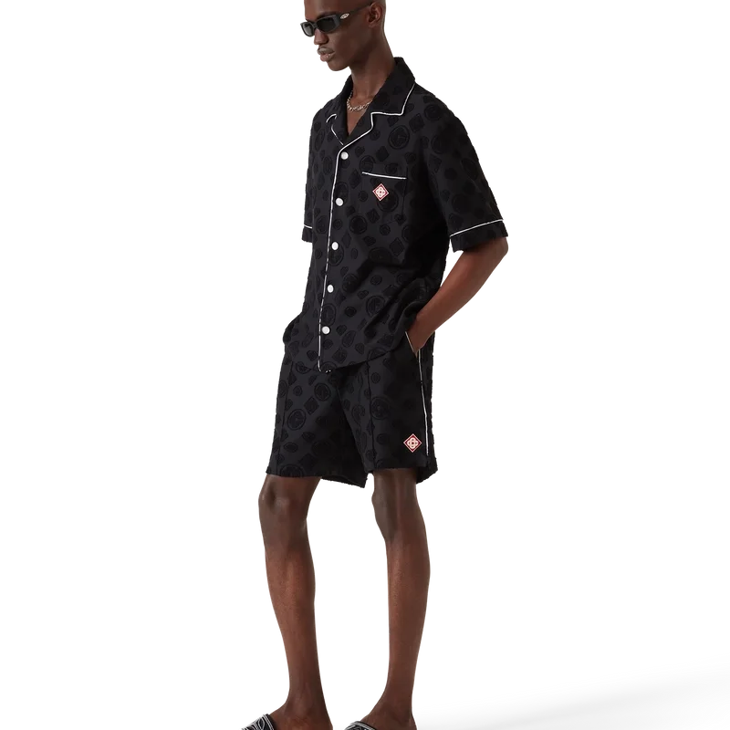 Les sandales de piscine pour homme sont confectionnées en tissu éponge brodé et arborent le logo en forme de losange de la Maison ainsi que son motif de laurier emblématique sur la tige. Elles sont dotées d’une semelle intérieure sculptée pour un confort accru et d’une semelle extérieure en caoutchouc texturé alliant performance et décontraction.