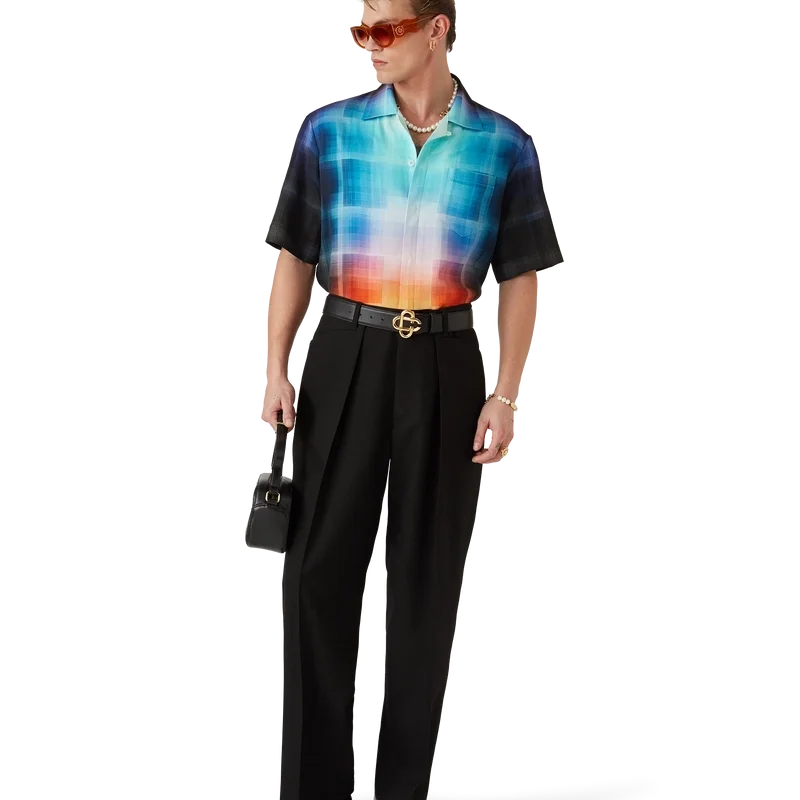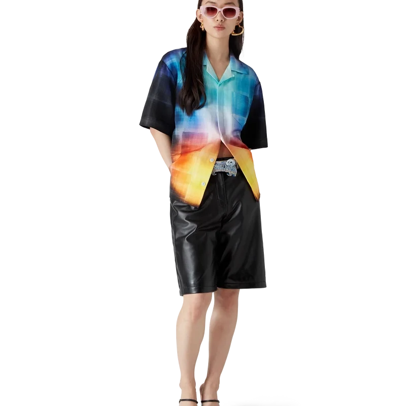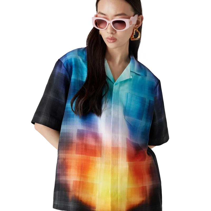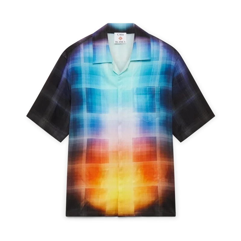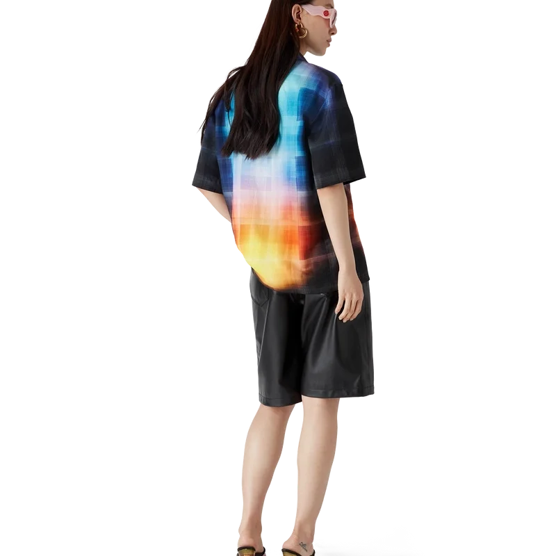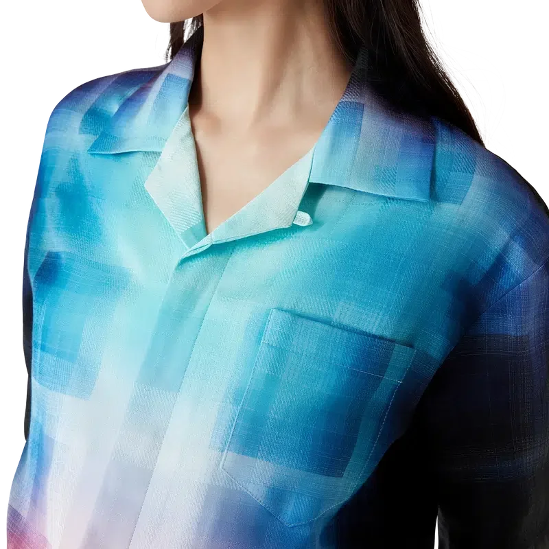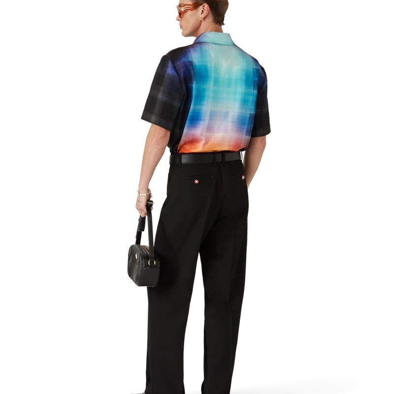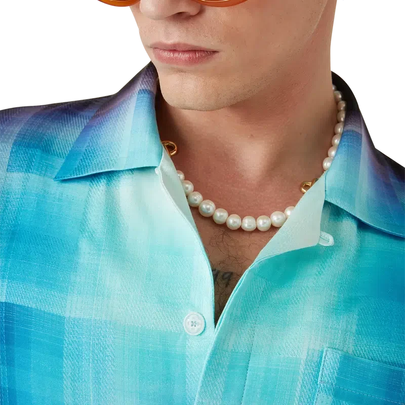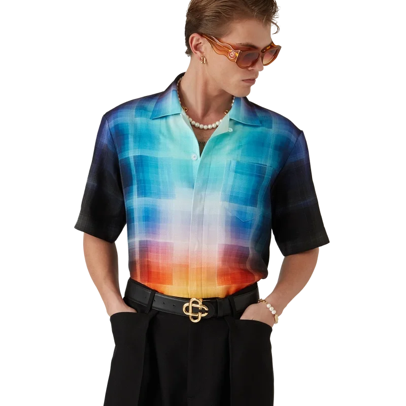La chemise à carreaux dégradés présente un motif imprimé aux couleurs dégradées de la saison, confectionnée dans un tissu en coton mélangé à motif à carreaux. Elle est dotée d’un col cubain, d’une poche poitrine, d’une fermeture à boutons cachée et de boutons en corozo arborant le logo Cc entrelacé.
