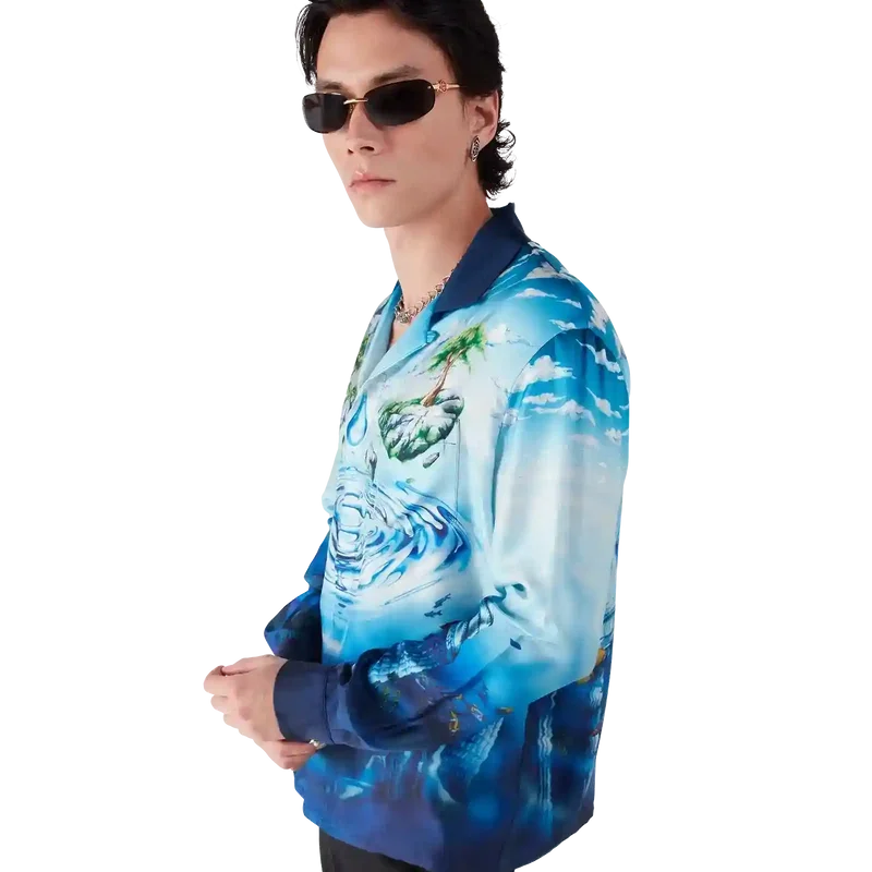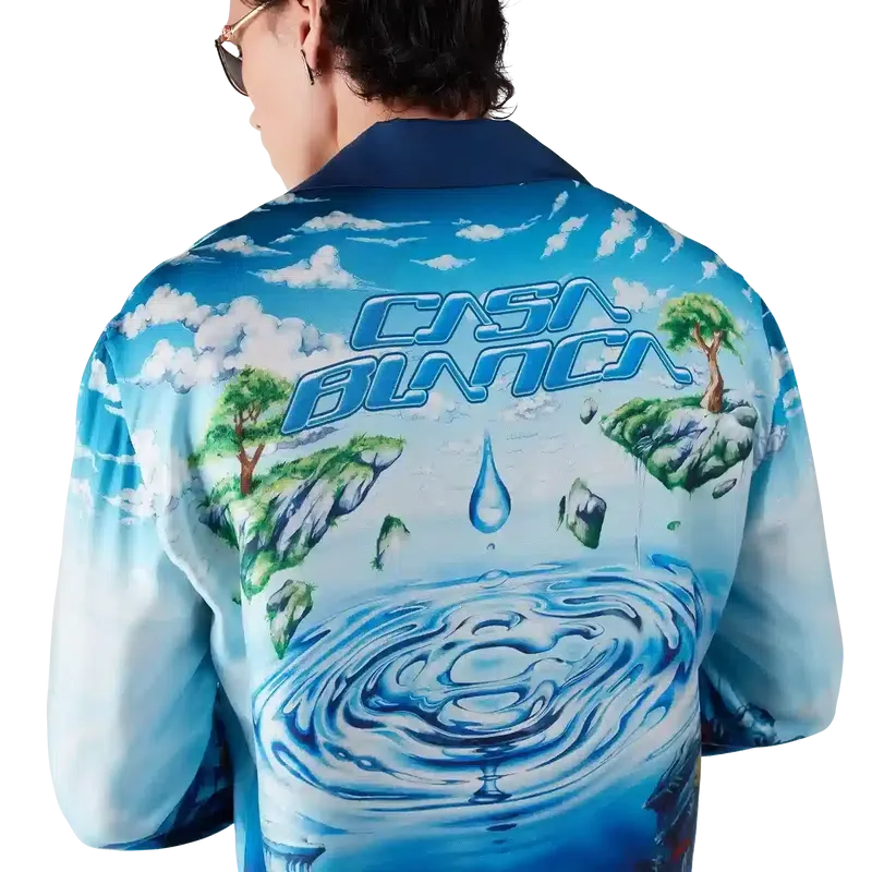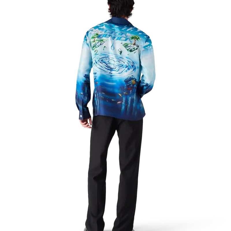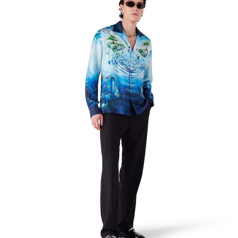 La chemise à manches longues Lost Atlantis présente un design raffiné orné de l’imprimé Water Atlantis de la Maison, qui mêle art numérique et peinture à la main. Le logo CC entrelacé est représenté sous forme de vagues à la surface de l’eau, tandis que la partie inférieure de la chemise fait référence à la civilisation mythique de l’Atlantis, enrichie d’une faune exotique et de trésors cachés. Elle est dotée d’une fermeture à boutons, de boutons arborant le logo CC entrelacé et de boutons émaillés à bordure dorée, signature de la maison, aux poignets.