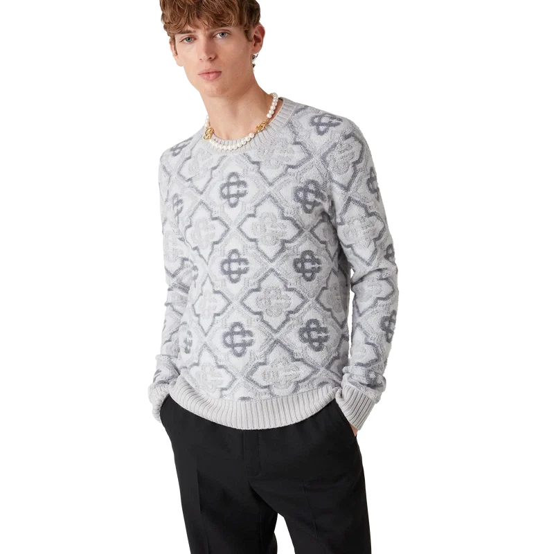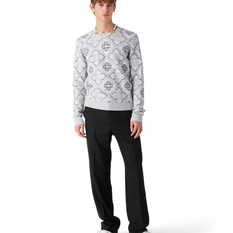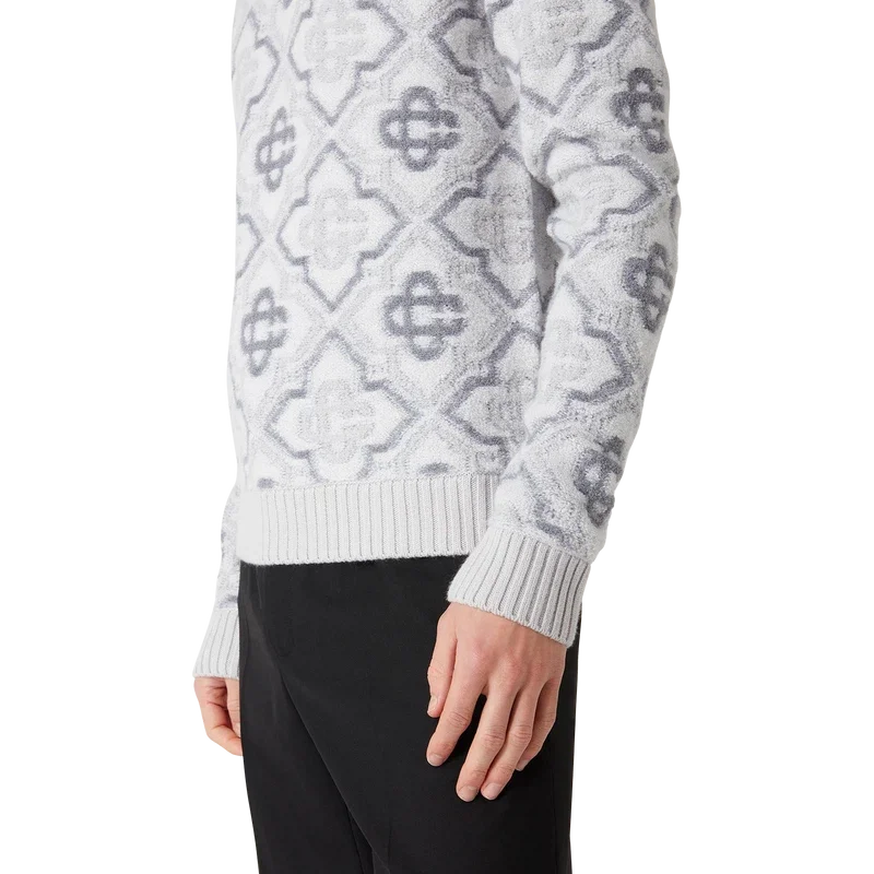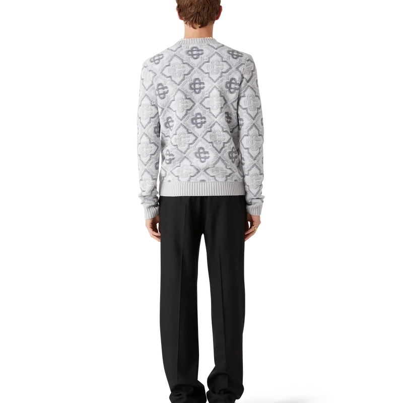 Le pull en maille Monogram est un modèle classique orné du monogramme emblématique de la Maison, confectionné dans un tissu en laine mélangée. Il présente un col rond, des poignets et un ourlet côtelés classiques.