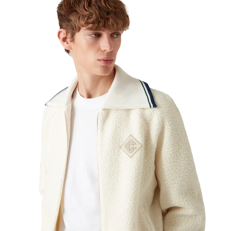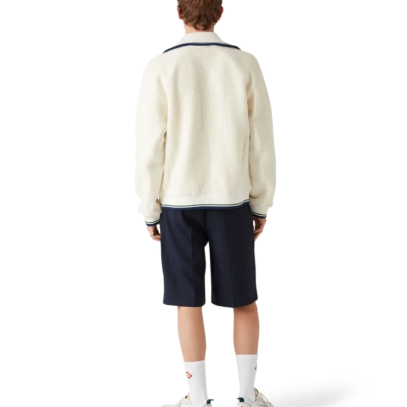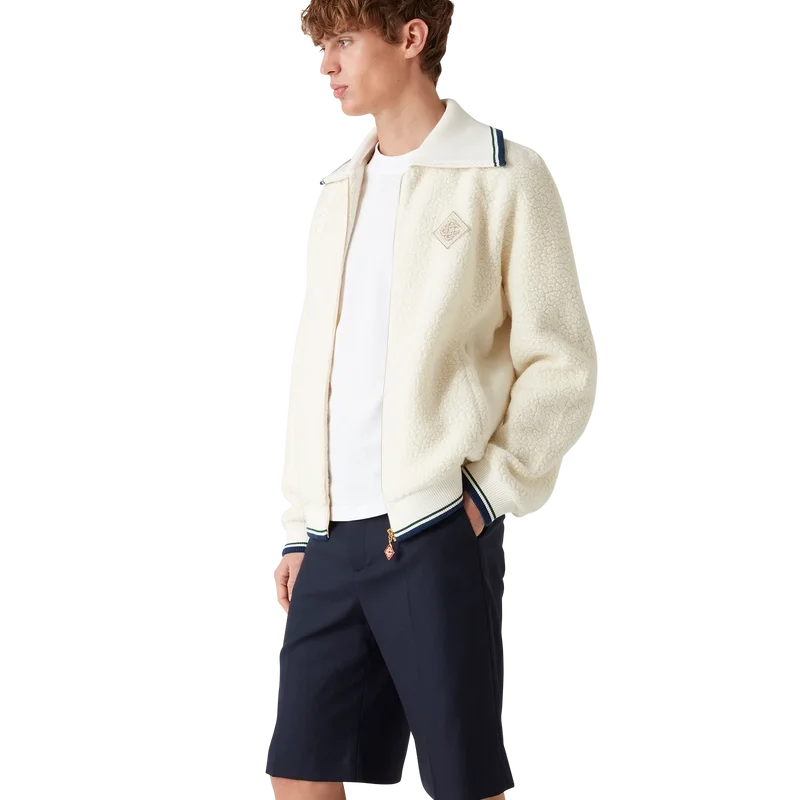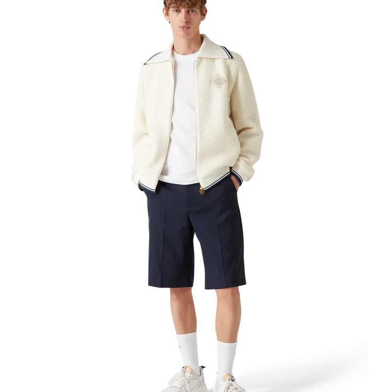 Le pull zippé en cachemire est un modèle à manches longues confectionné dans un mélange de cachemire. Il est doté d’une fermeture zippée, du logo en forme de losange de la Maison – réinterprété pour cette saison –, d’une doublure, de poches latérales, ainsi que d’un col, de poignets et d’un ourlet côtelés avec des détails rayés.