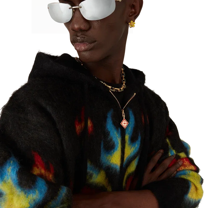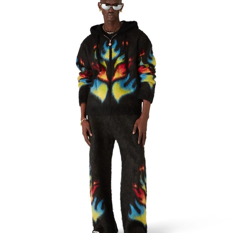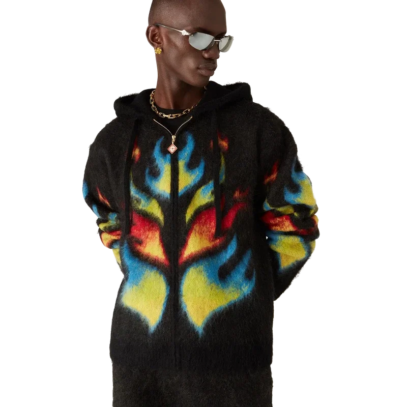 Le sweat à capuche zippé Mohair Flame Laurel est un modèle en maille à manches longues qui revisite notre haut Laurel de la collection Nigerian, s’inspirant des graphismes audacieux des maillots de football. Il est doté d’une fermeture à glissière, d’une capuche avec cordon de serrage, ainsi que de poignets et d’un ourlet côtelés.
