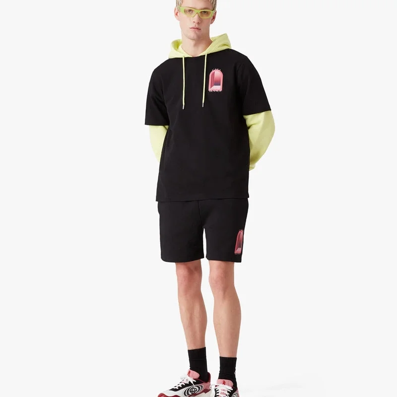 Le t-shirt à manches courtes Black and Pink Arches présente un design raffiné, orné d’un motif sérigraphié emblématique représentant l’arche, symbole abstrait de force. Il est doté d’un col rond classique et d’une silhouette ample.