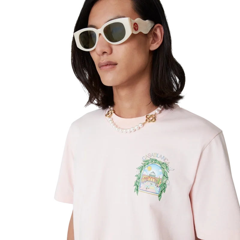 Le t-shirt « L’arche De Tennis » est un modèle imprimé à manches courtes raffiné, orné du motif saisonnier de la maison et d’éléments graphiques inspirés de l’arche, de la nature, de l’architecture et du tennis. Il se caractérise par un col rond classique et une coupe décontractée.