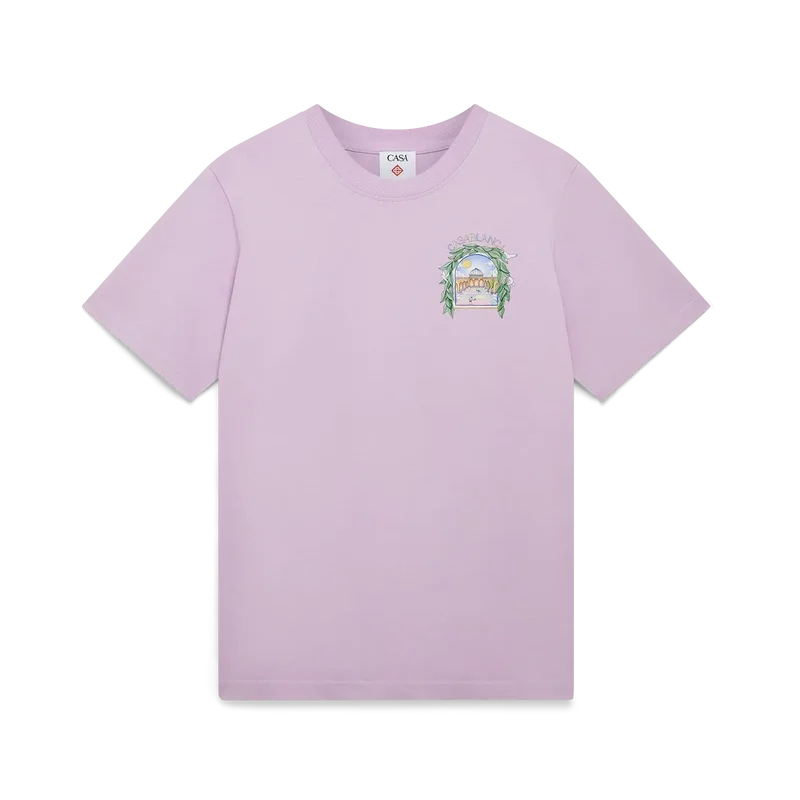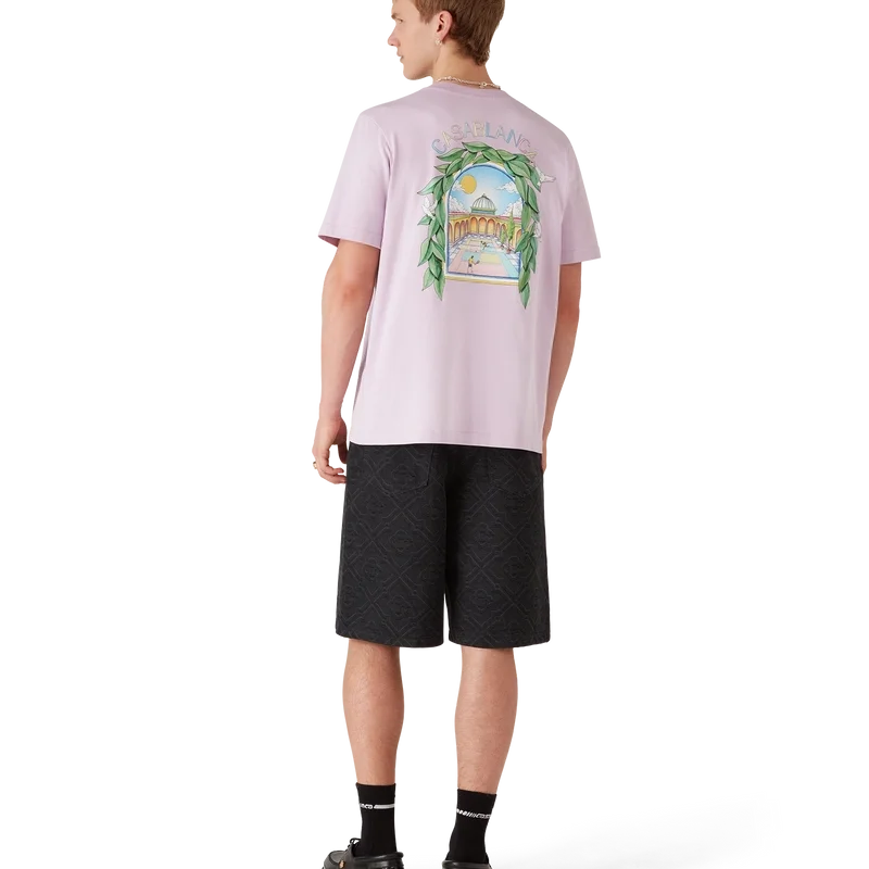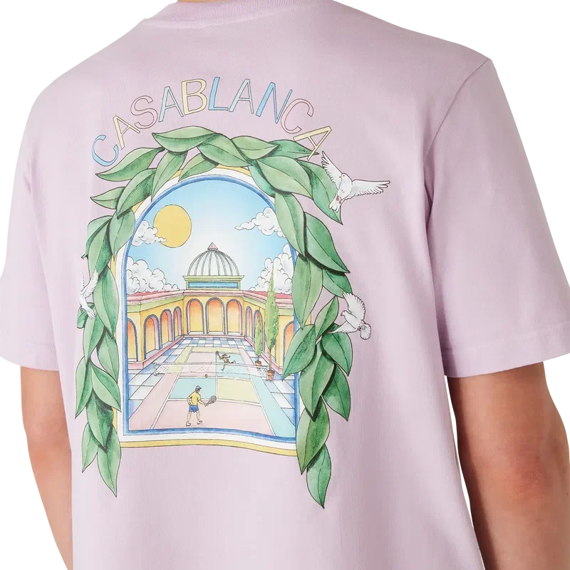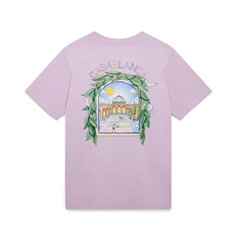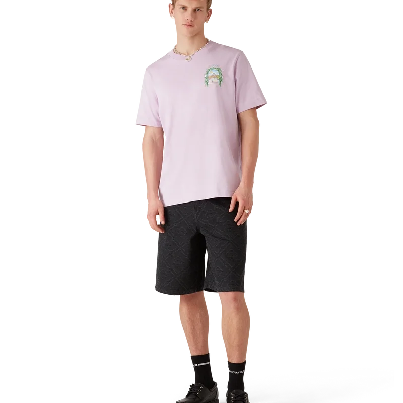 Le t-shirt L’arche De Tennis est un modèle imprimé à manches courtes raffiné, orné du motif saisonnier de la maison avec des éléments de design inspirés de l’arche, de la nature, de l’architecture et du tennis. Il présente un col rond classique et une silhouette décontractée.<!–