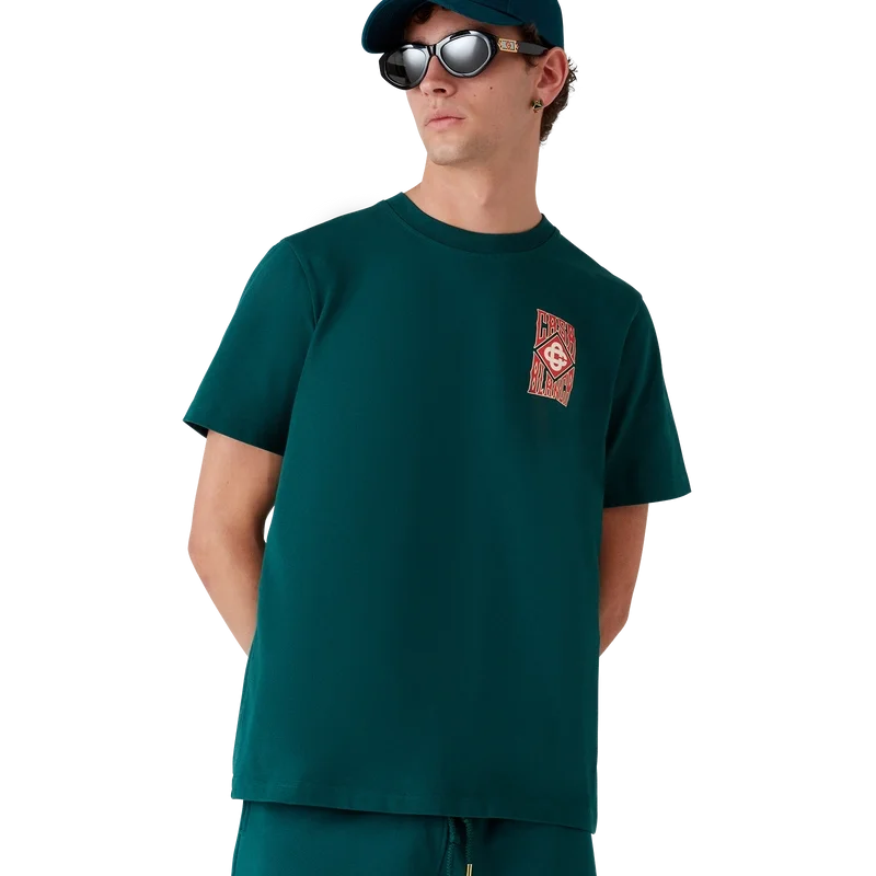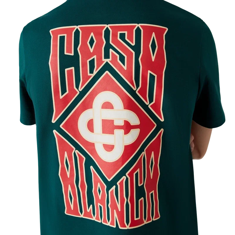 Le t-shirt Gothic Casa Way est un modèle à manches courtes imprimé, confectionné en coton biologique. Il arbore le logo superposé de la maison, réalisé en typographie gothique, ainsi que le logo en forme de diamant emblématique. Il est doté d’un col rond classique.